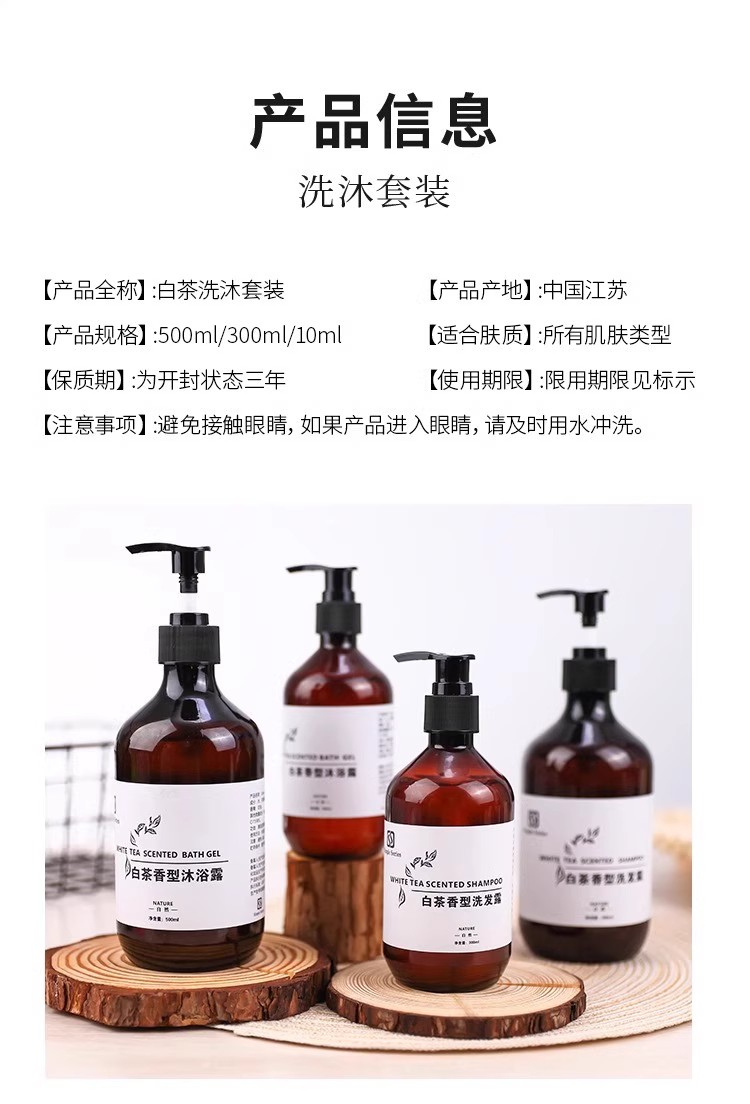 星级酒店宾馆民宿洗发水沐浴露白茶套装浴场洗浴用品300ml大瓶装