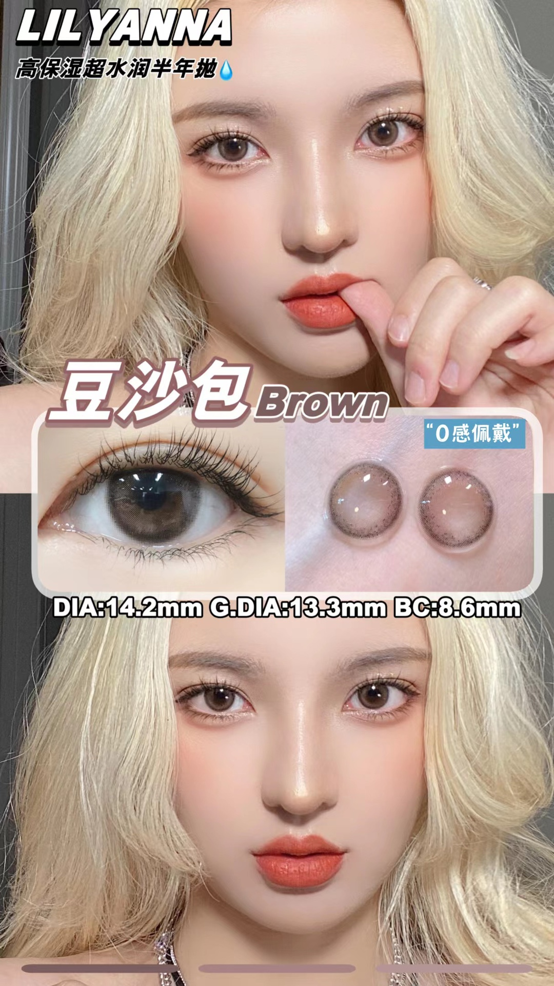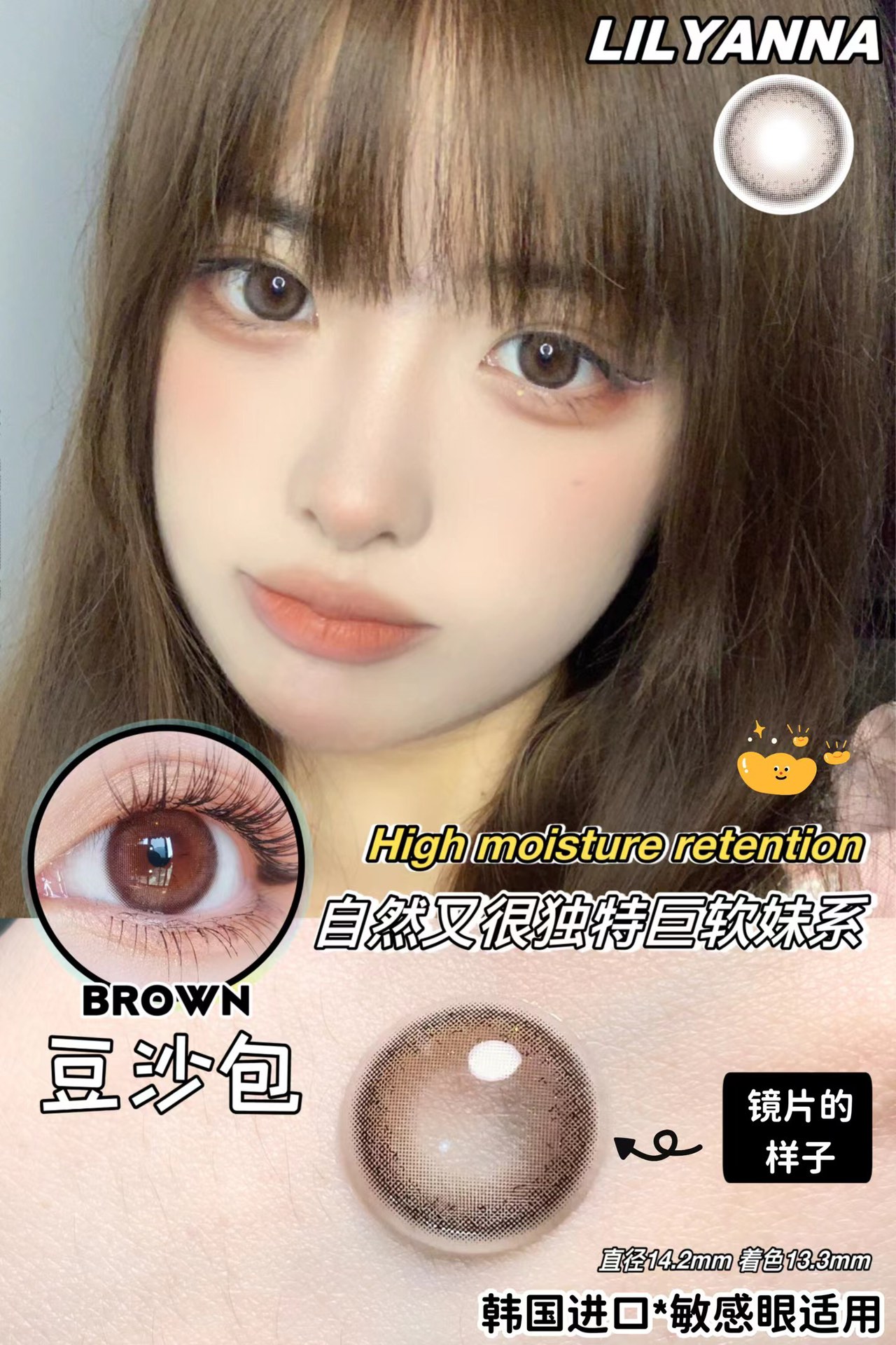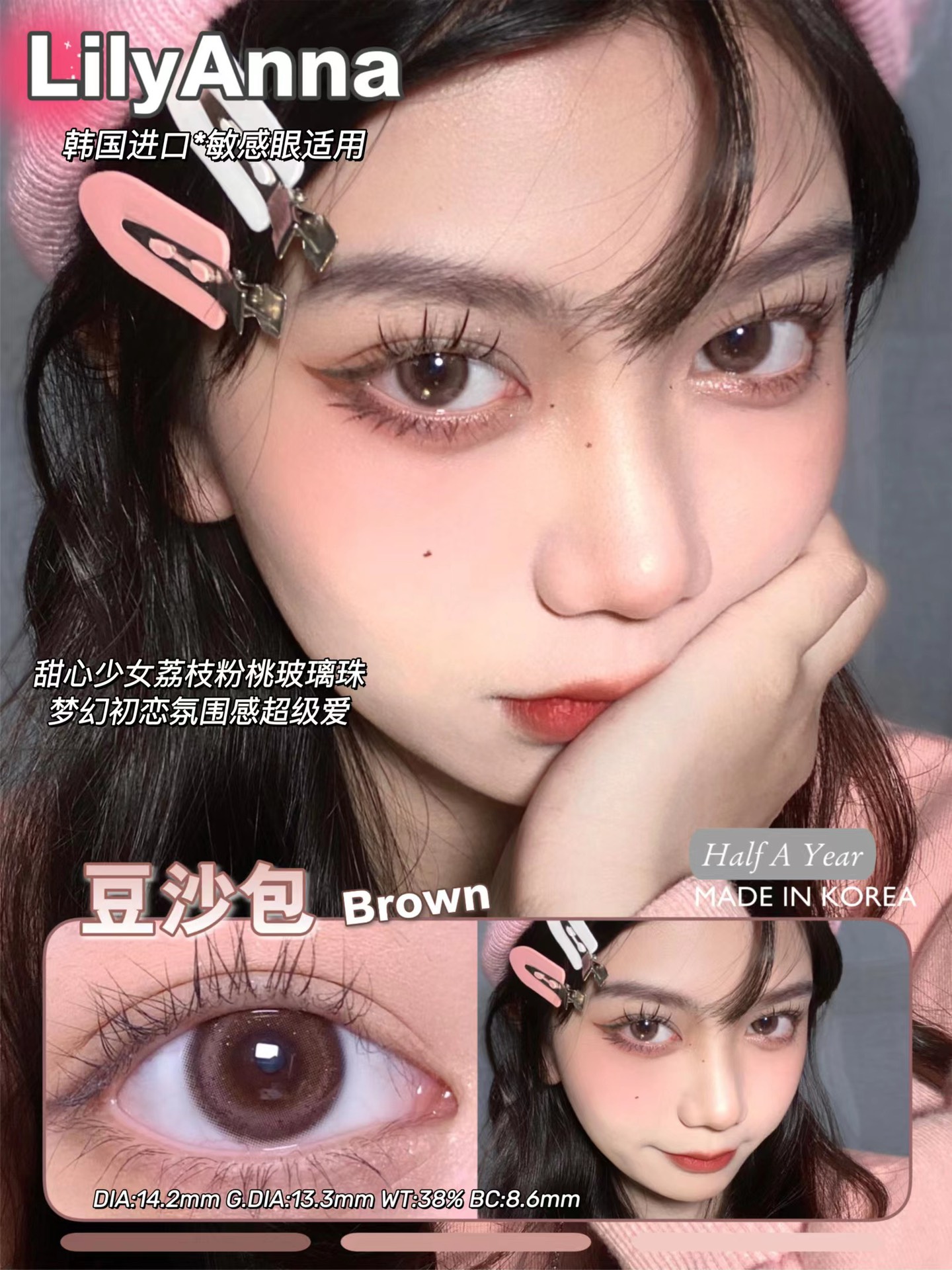 【半年抛】豆沙包 LilyAnna | 中直径14.2 着色13.3 | 【同品牌多副美瞳更划算,选款色板在详情页内】,棕粉色美瞳 金粉美瞳