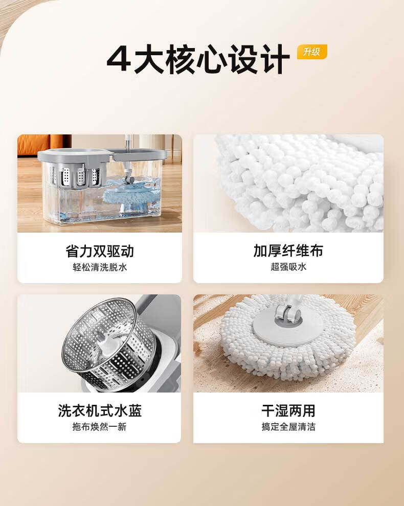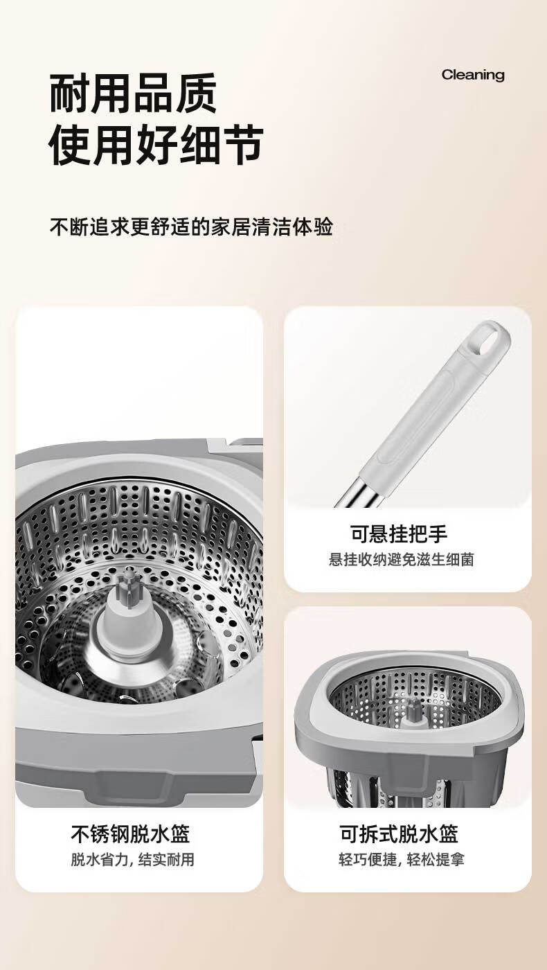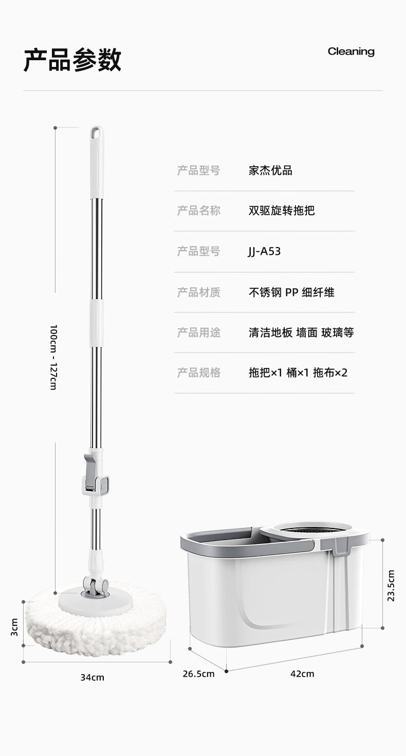 家杰优品旋转拖把家用一拖净免手洗2024省力甩干拖把桶套装拖布吸水墩布 100023997098