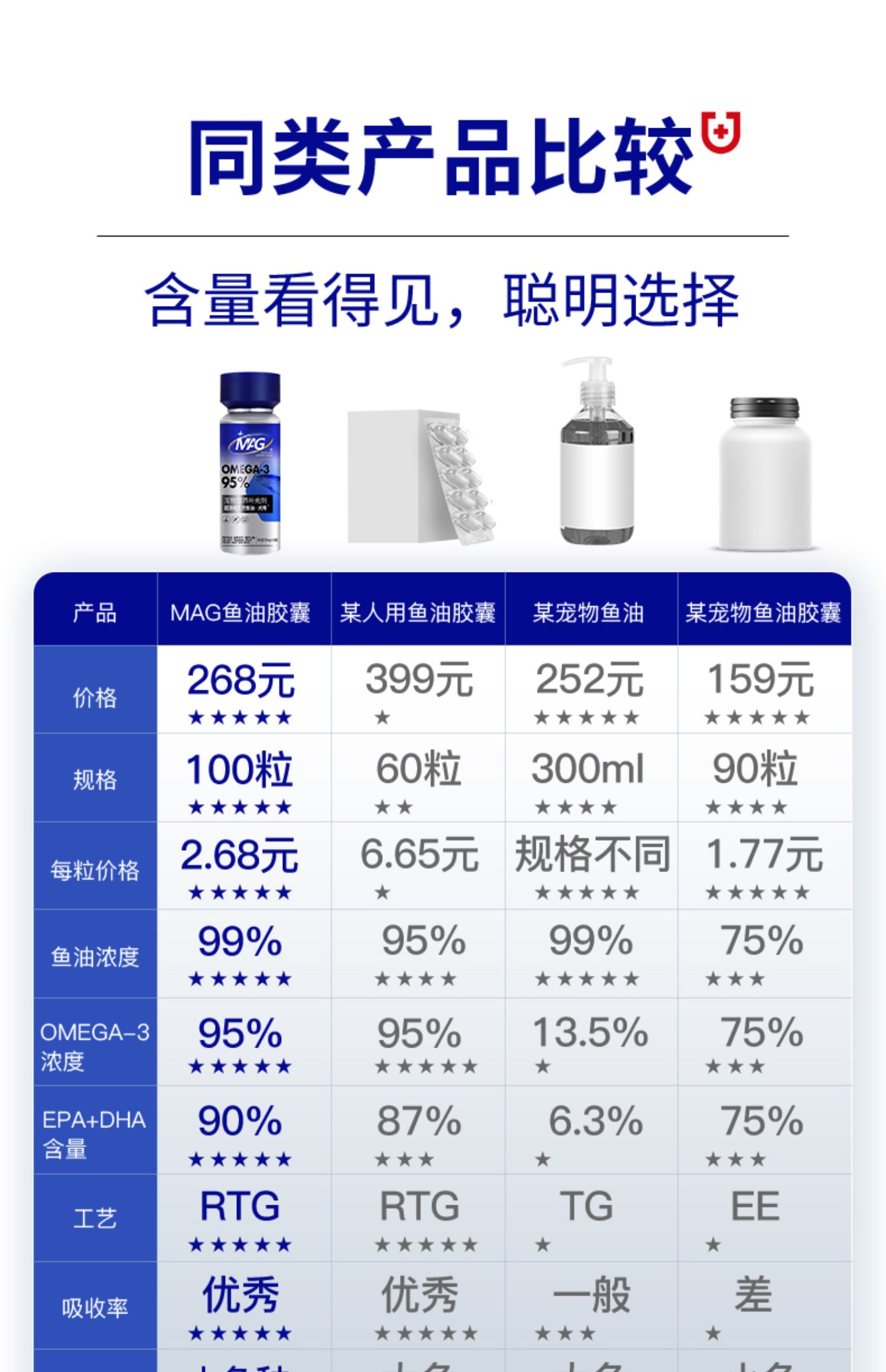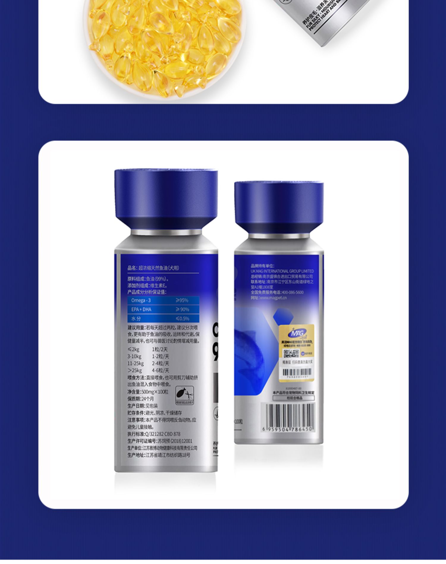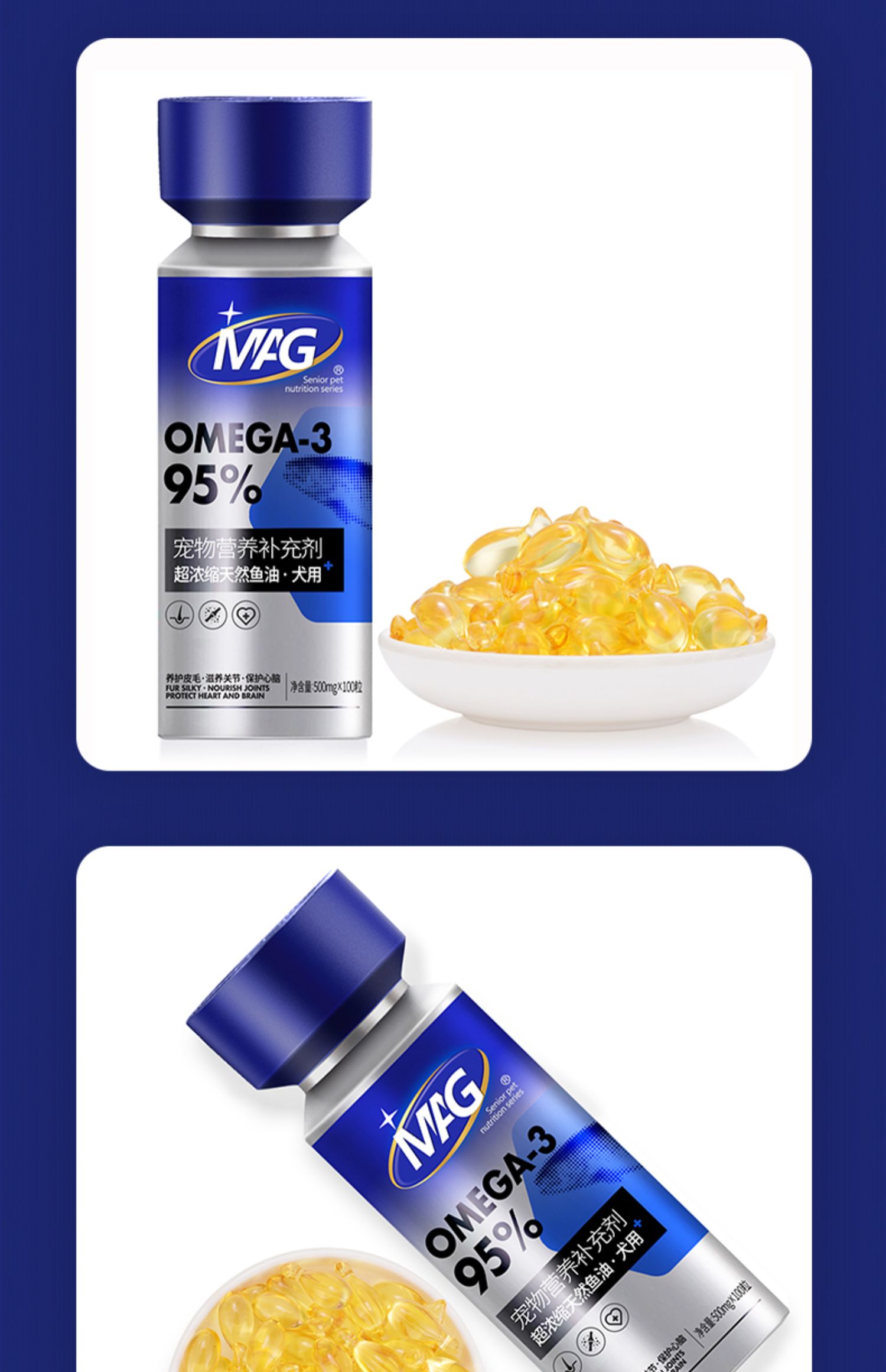 MAG U+ 狗狗鱼油胶囊 100粒/瓶 犬用超浓缩天然鱼油