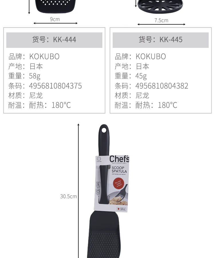 KOKUBO日本进口尼龙漏勺饭铲锅铲煎铲