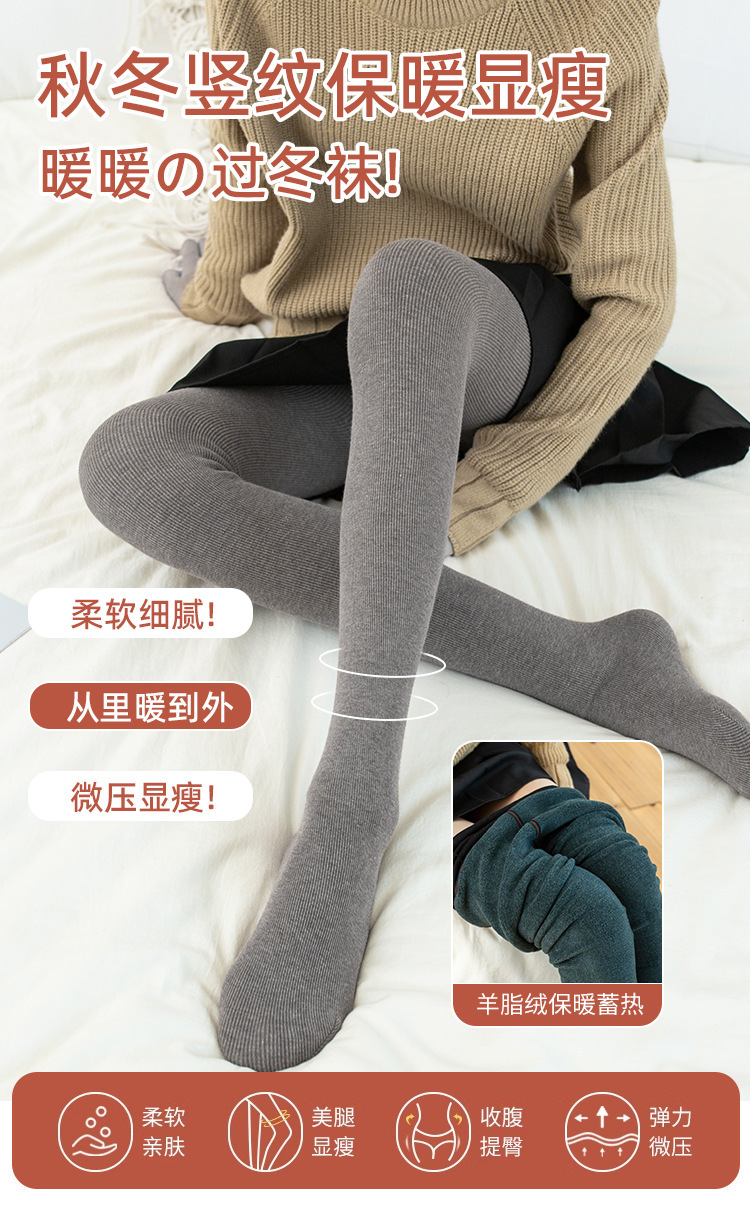 【打底裤袜女秋冬加厚棉竖条纹羊绒压力瘦腿袜提臀收腹不掉裆连裤袜