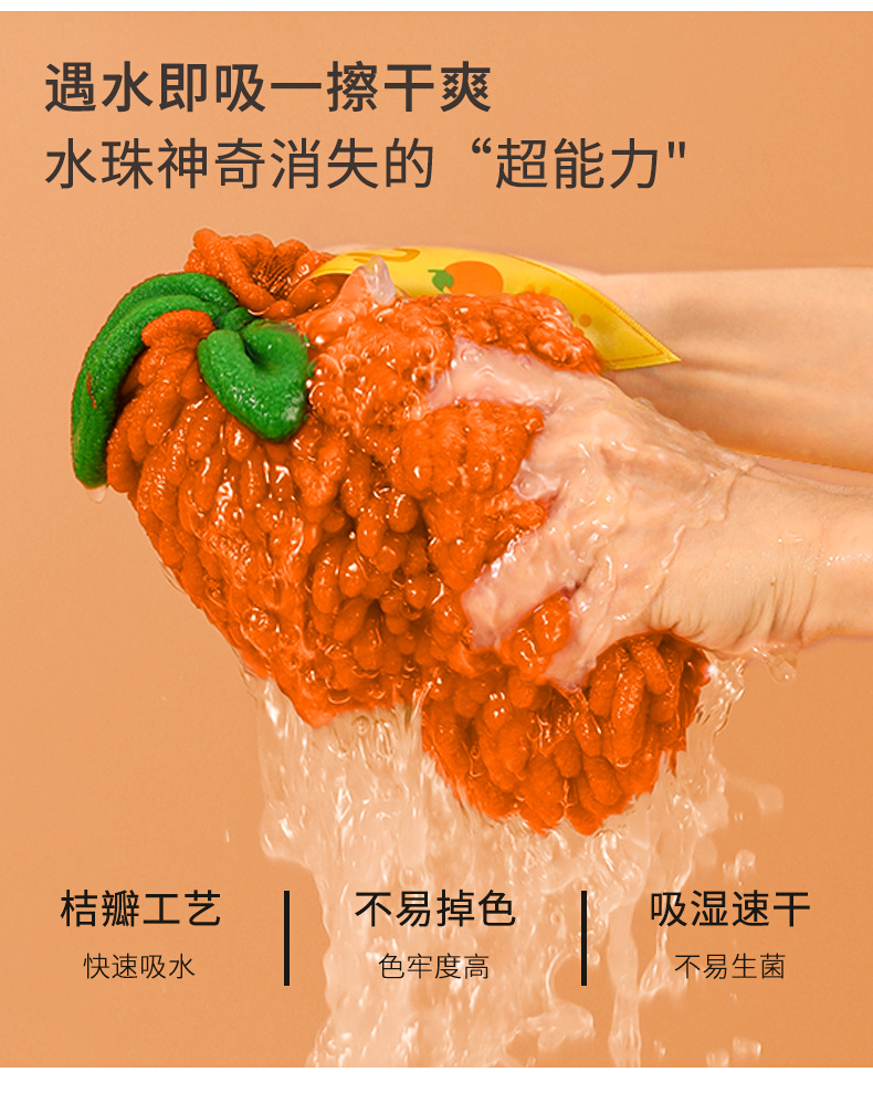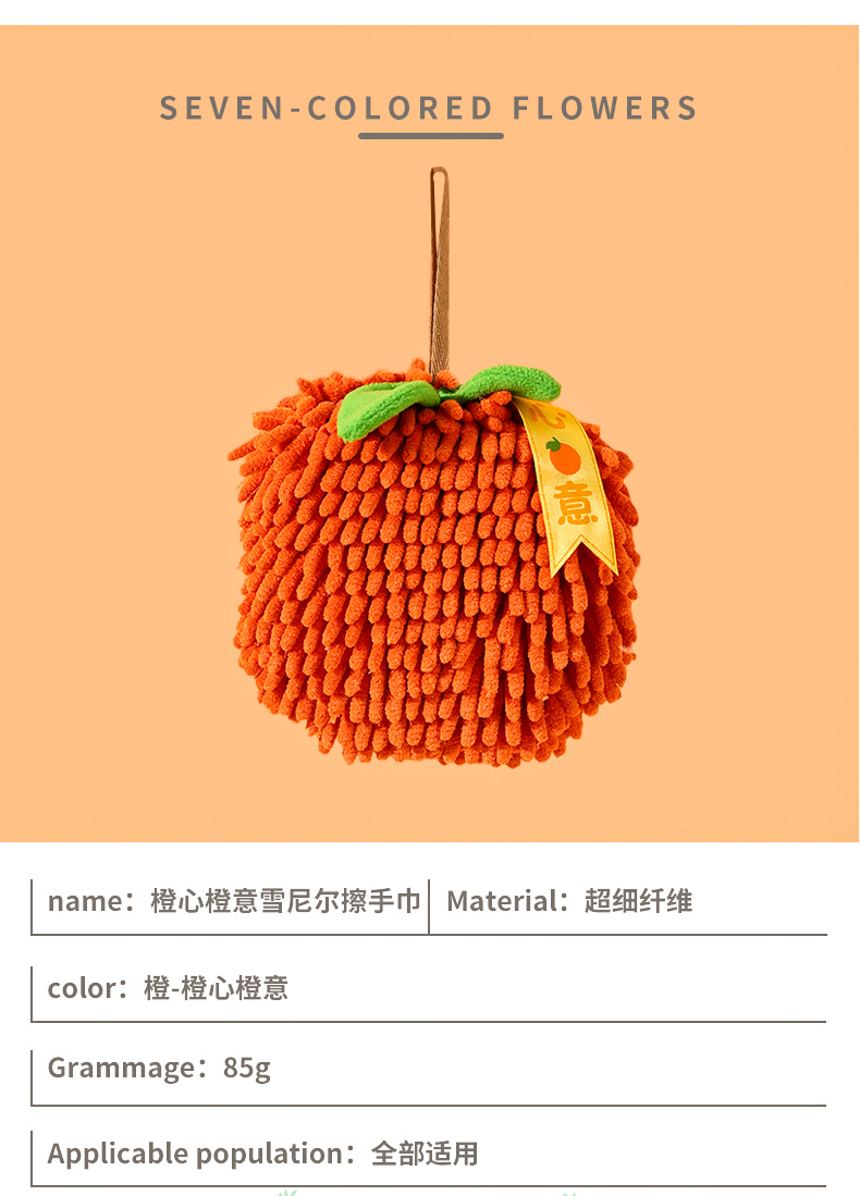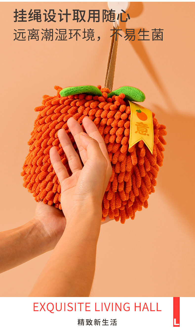 「橙心橙意!雪尼尔擦手球」创意擦手球伴手礼毛巾厨房用品挂式吸水擦手巾居家布艺