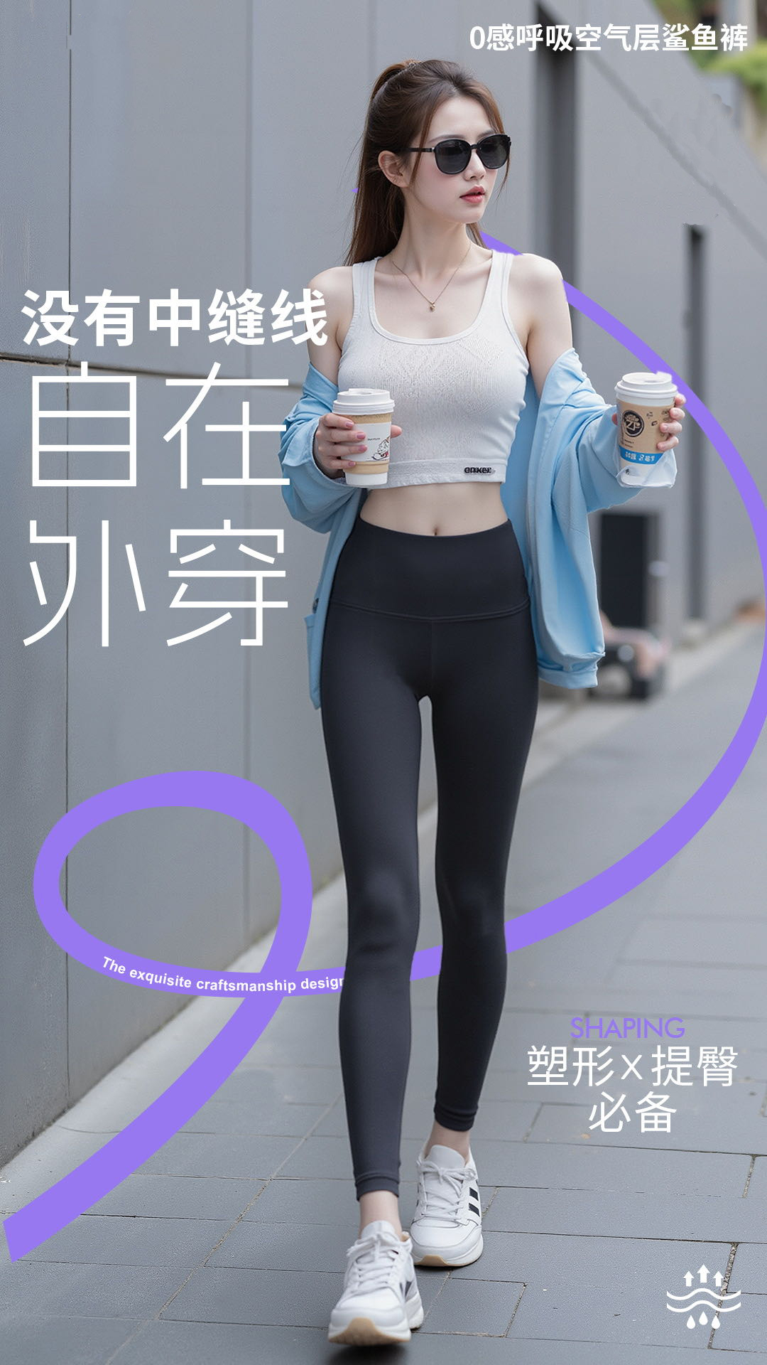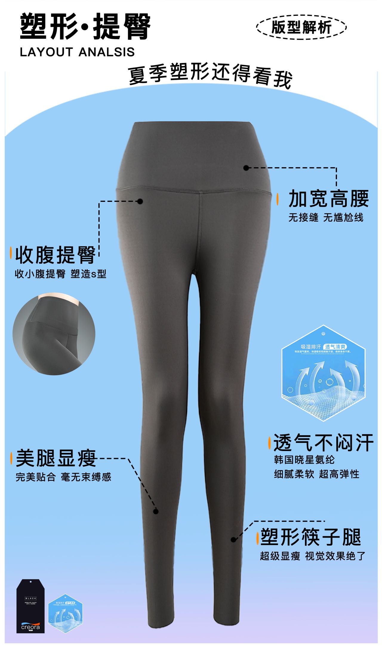 轻塑0感呼吸空气层鲨鱼裤春夏薄款打底裤【S25357】