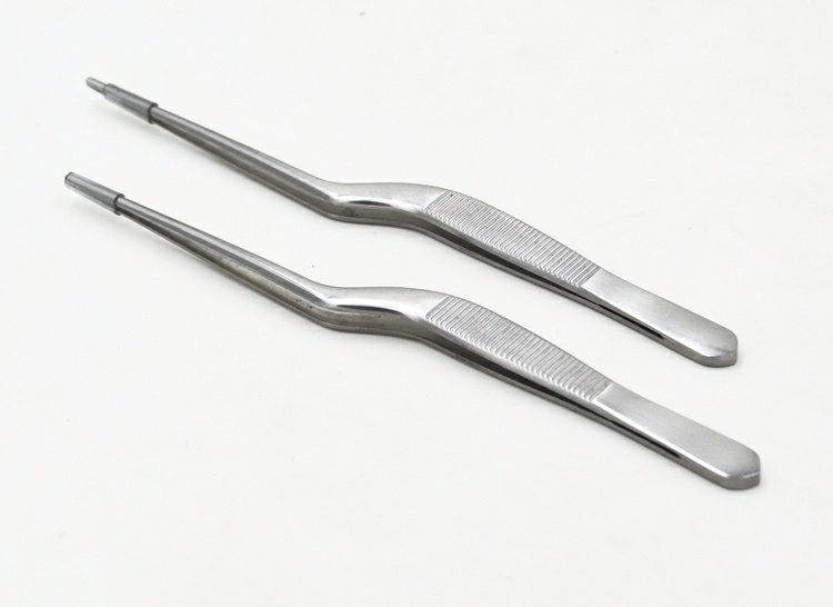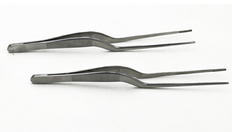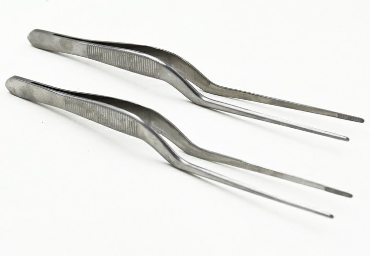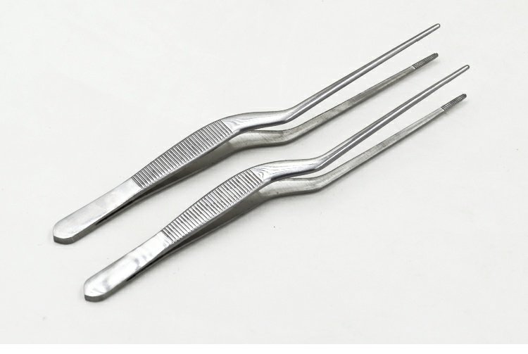 不锈钢镊子尖头圆头有齿多肉加厚枪型加硬直头弯头镊子工具14cm