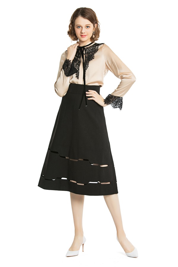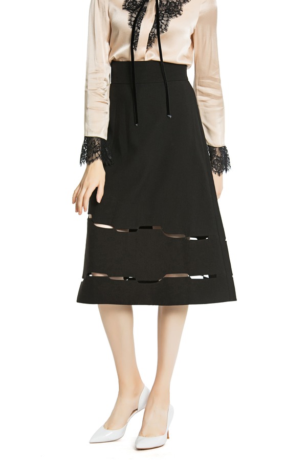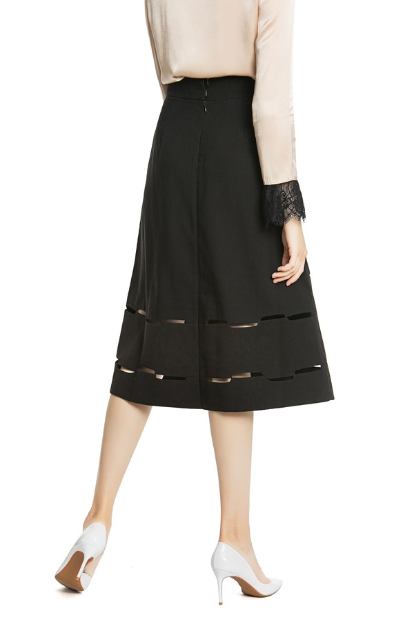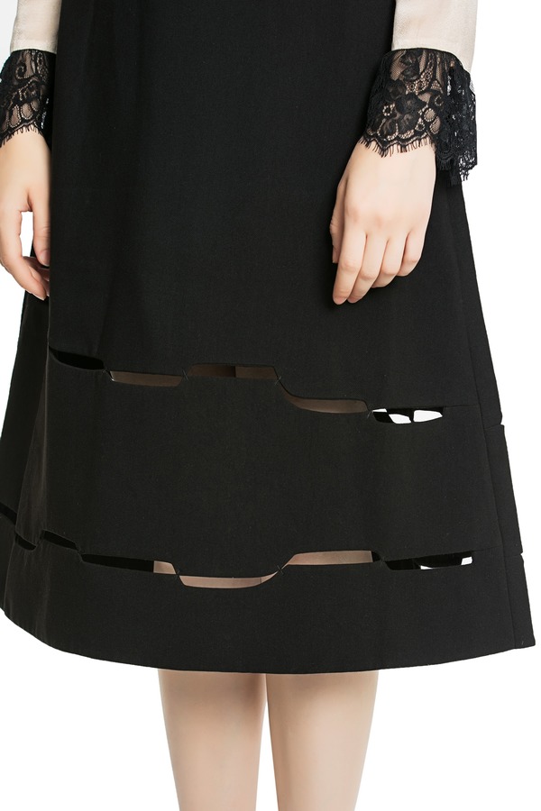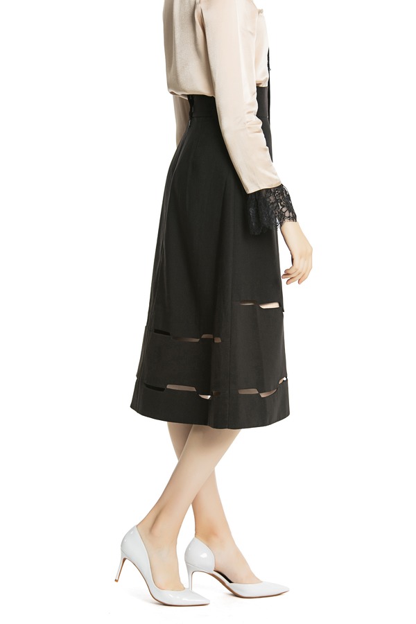DONG DE XI 黑色高腰镂空伞裙 3710