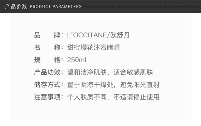 欧舒丹 甜蜜樱花,性质温和,泡沫软滑浓郁,能够深层滋润肌肤,让肌肤持续呈现水嫩平滑状态,