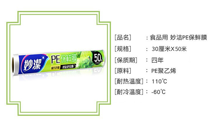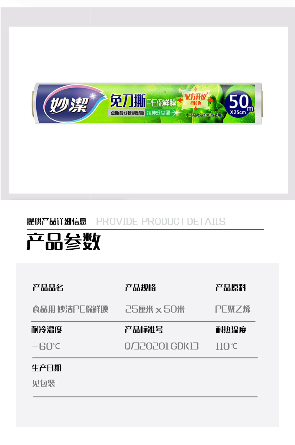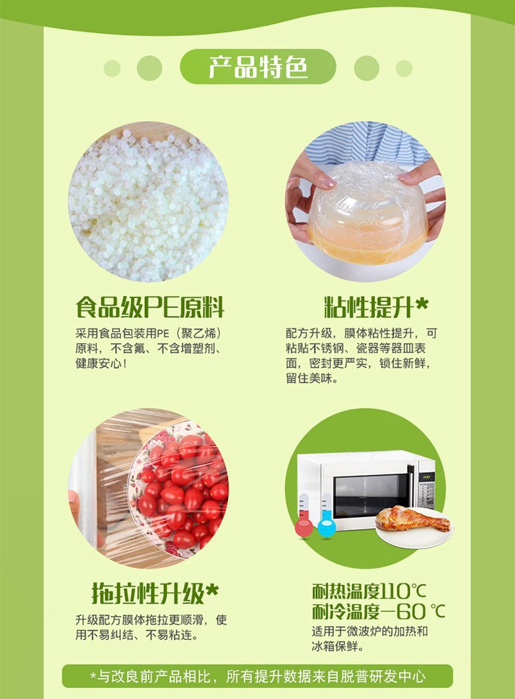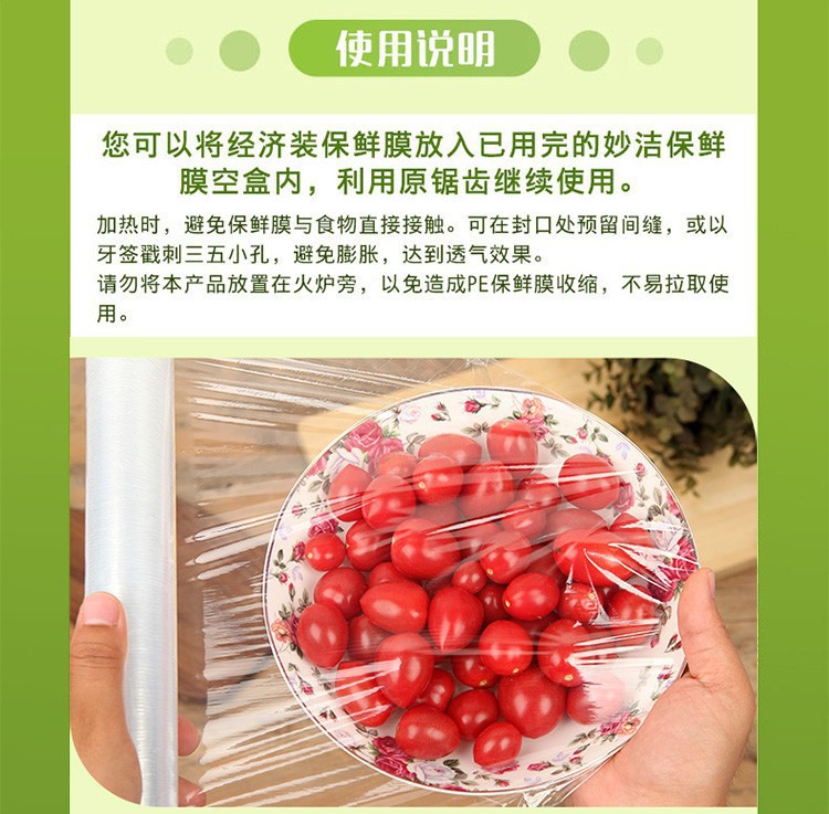 厨房好帮手!妙洁保鲜膜,食品级家用PE点断式 一次性耐高温 冰箱冷藏厨房用品