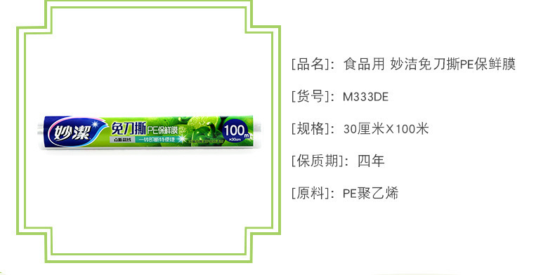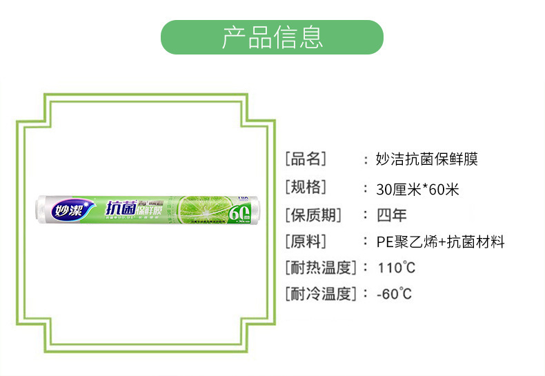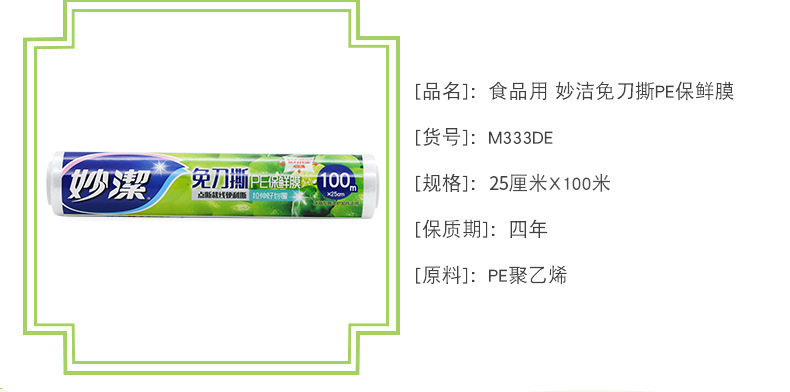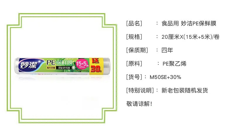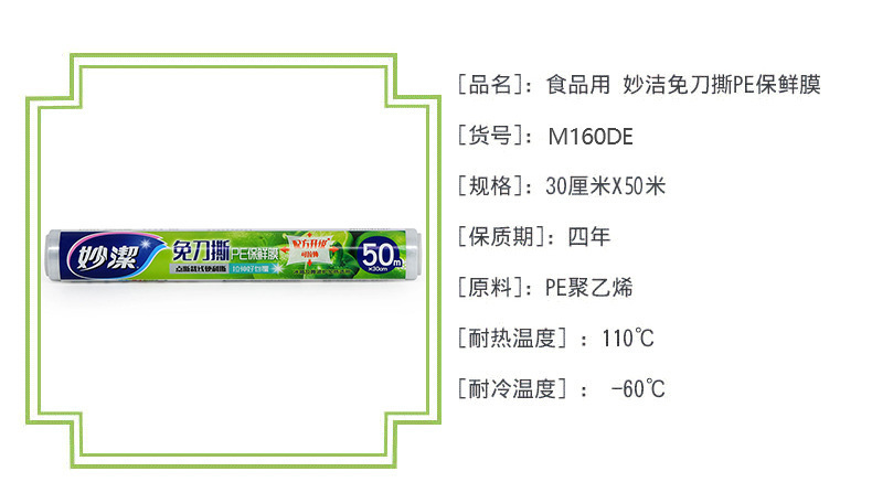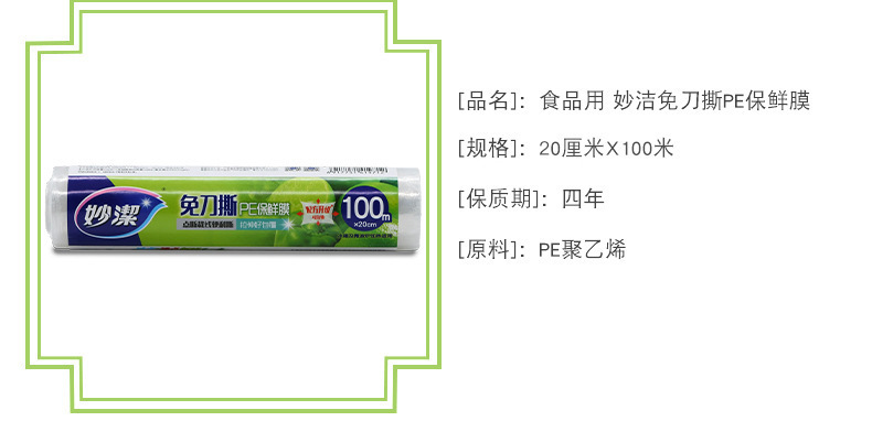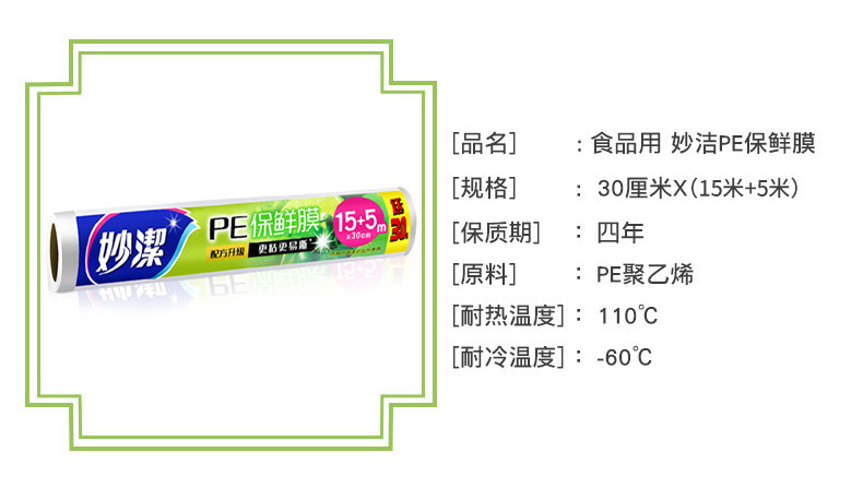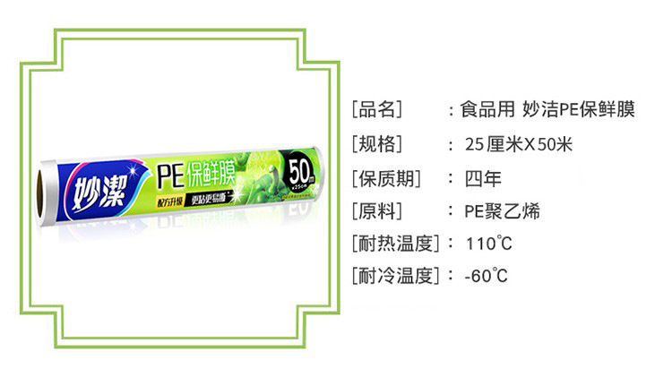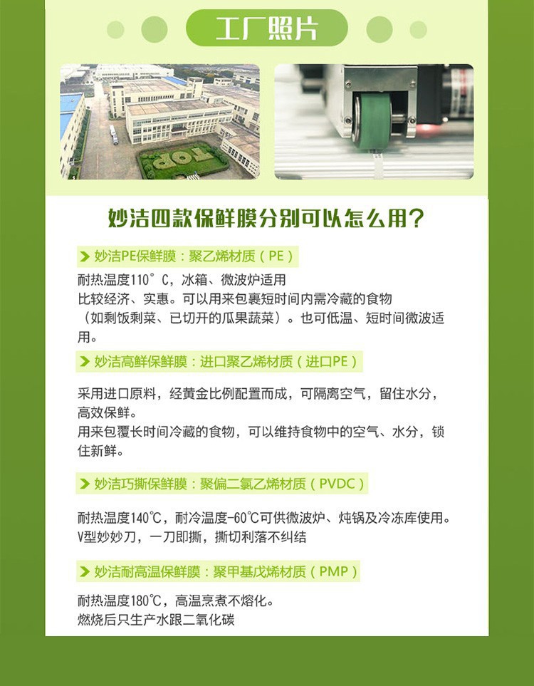 厨房好帮手!妙洁保鲜膜,食品级家用PE点断式 一次性耐高温 冰箱冷藏厨房用品