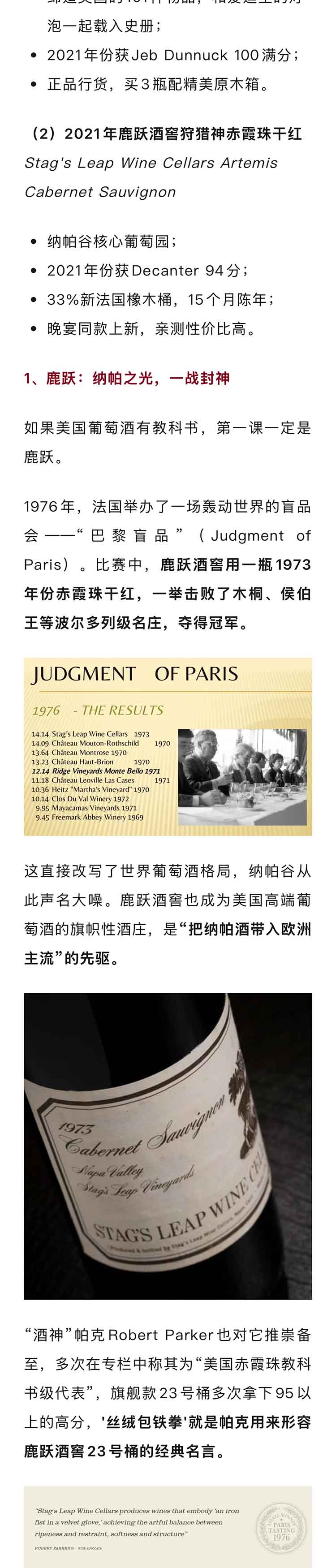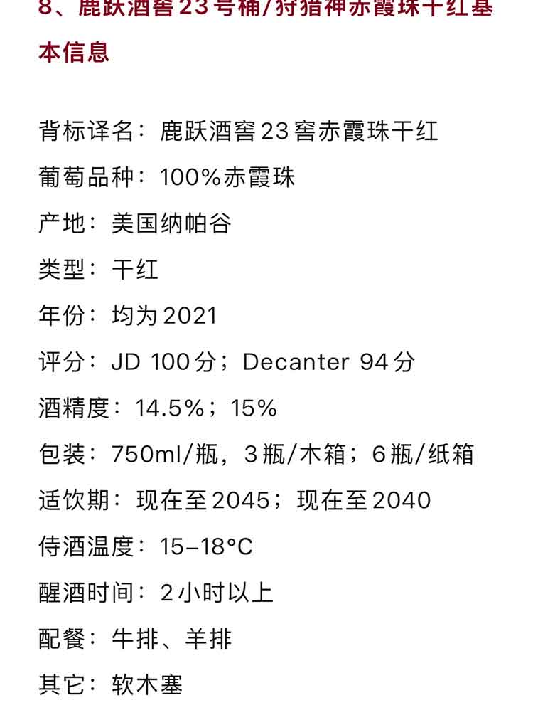 美国纳帕谷2021年鹿跃酒窖狩猎神赤霞珠干红