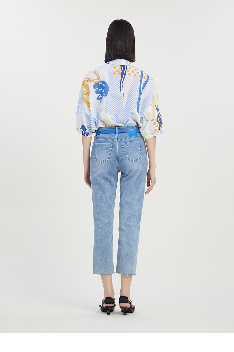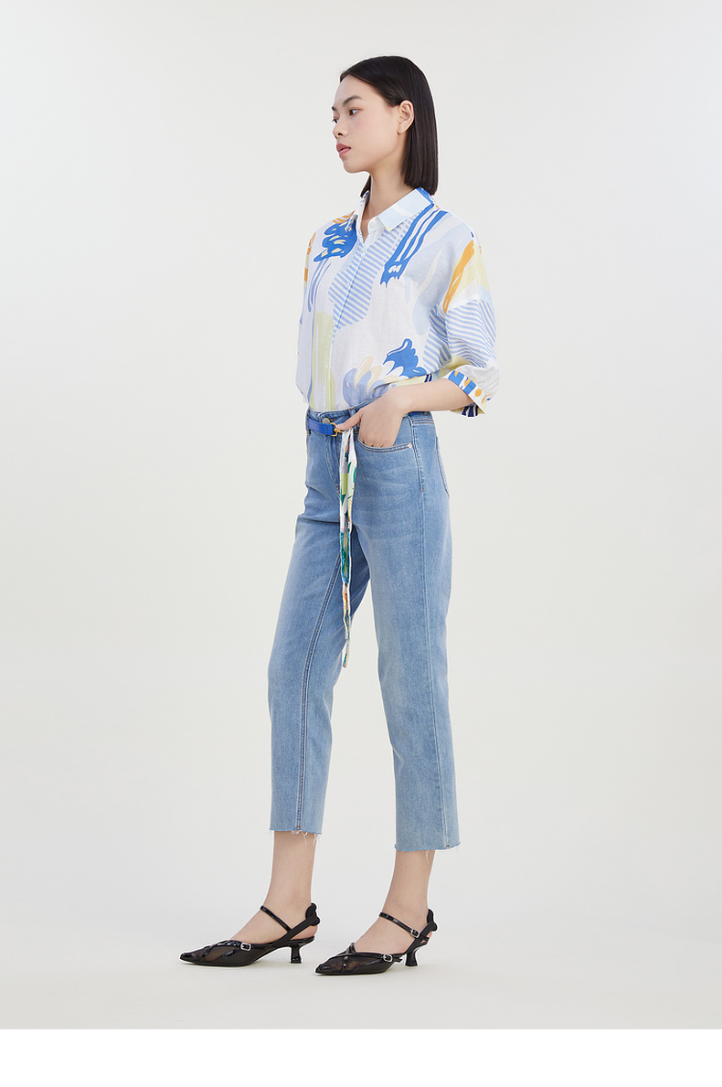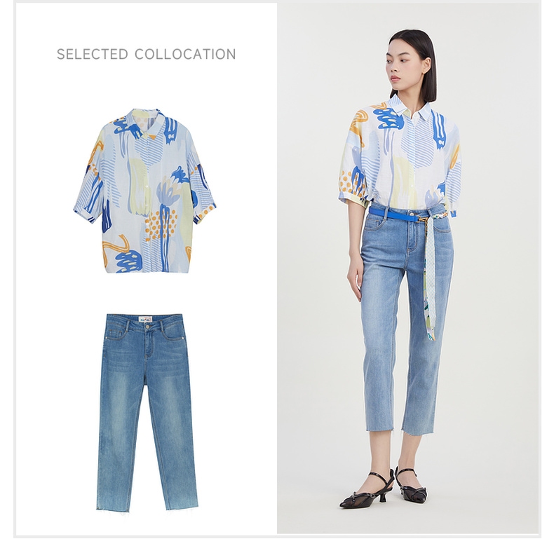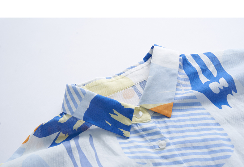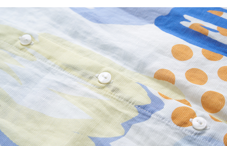 谜底复古抽象印花大廓形衬衫短袖女2023夏新款棉麻衬衣232MC0585