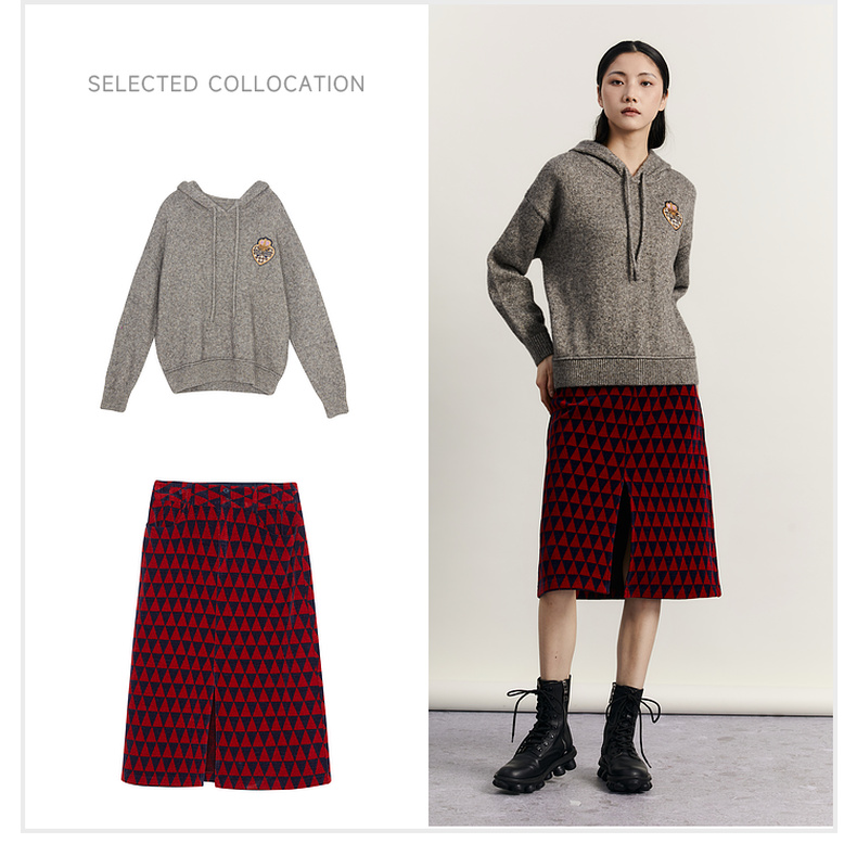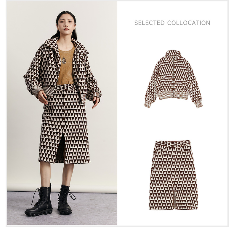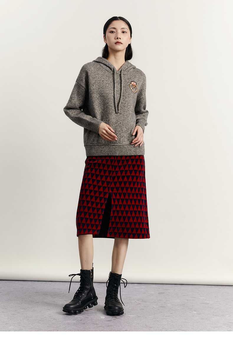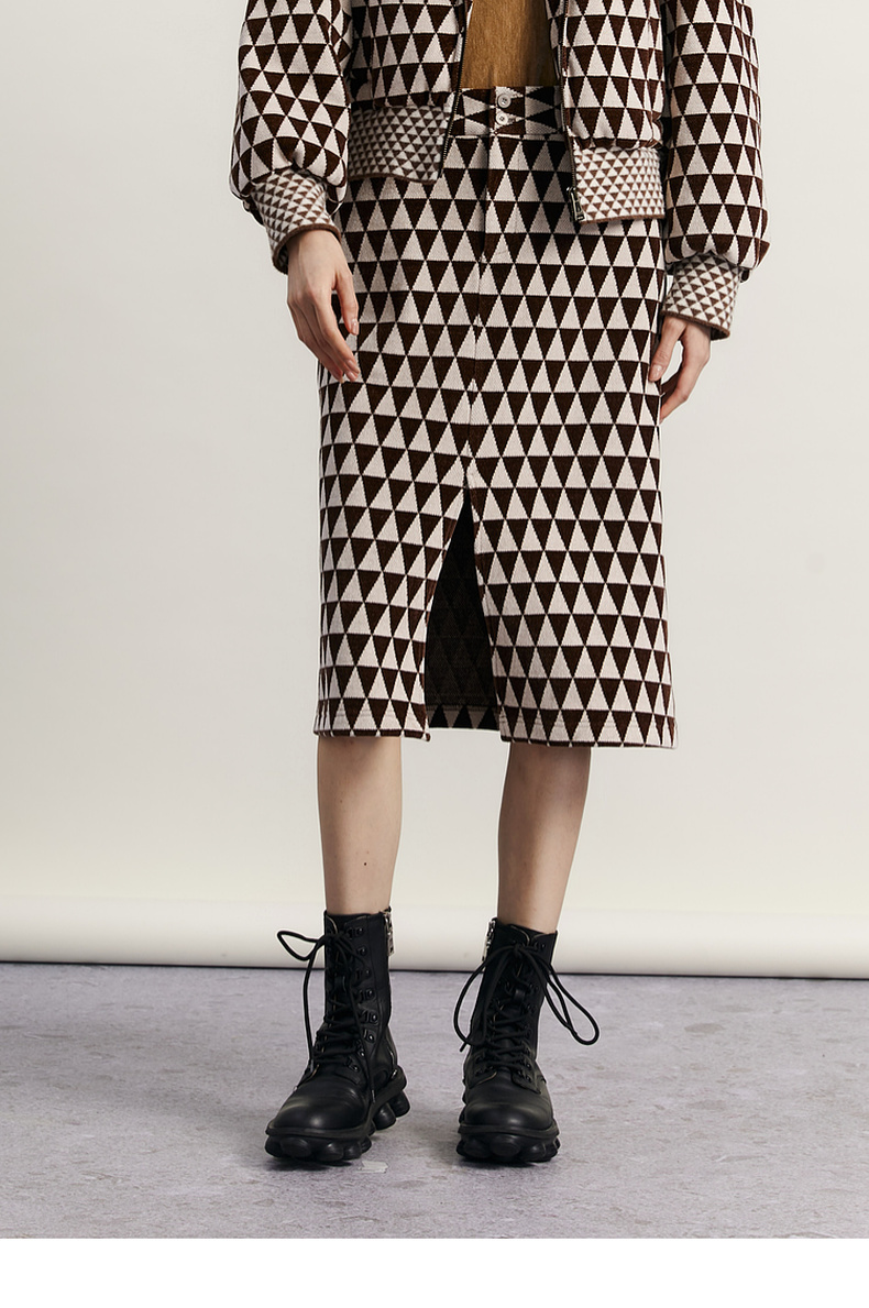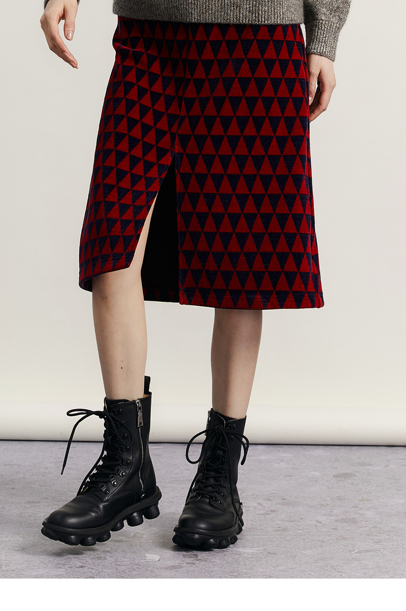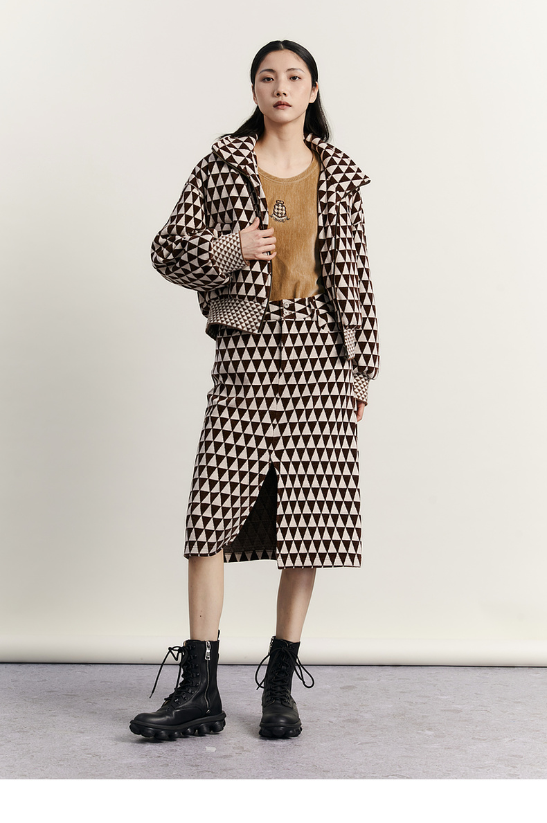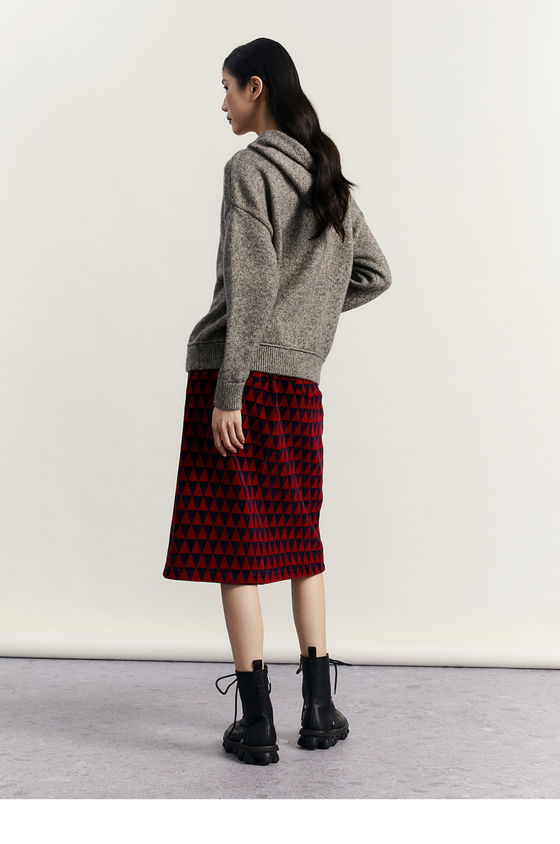 谜底雪尼尔半身裙女2023冬新品复古原创花色厚款中长裙234MB1576