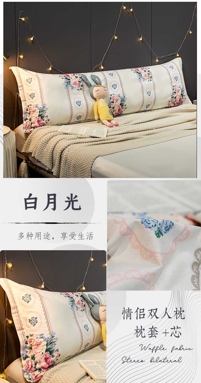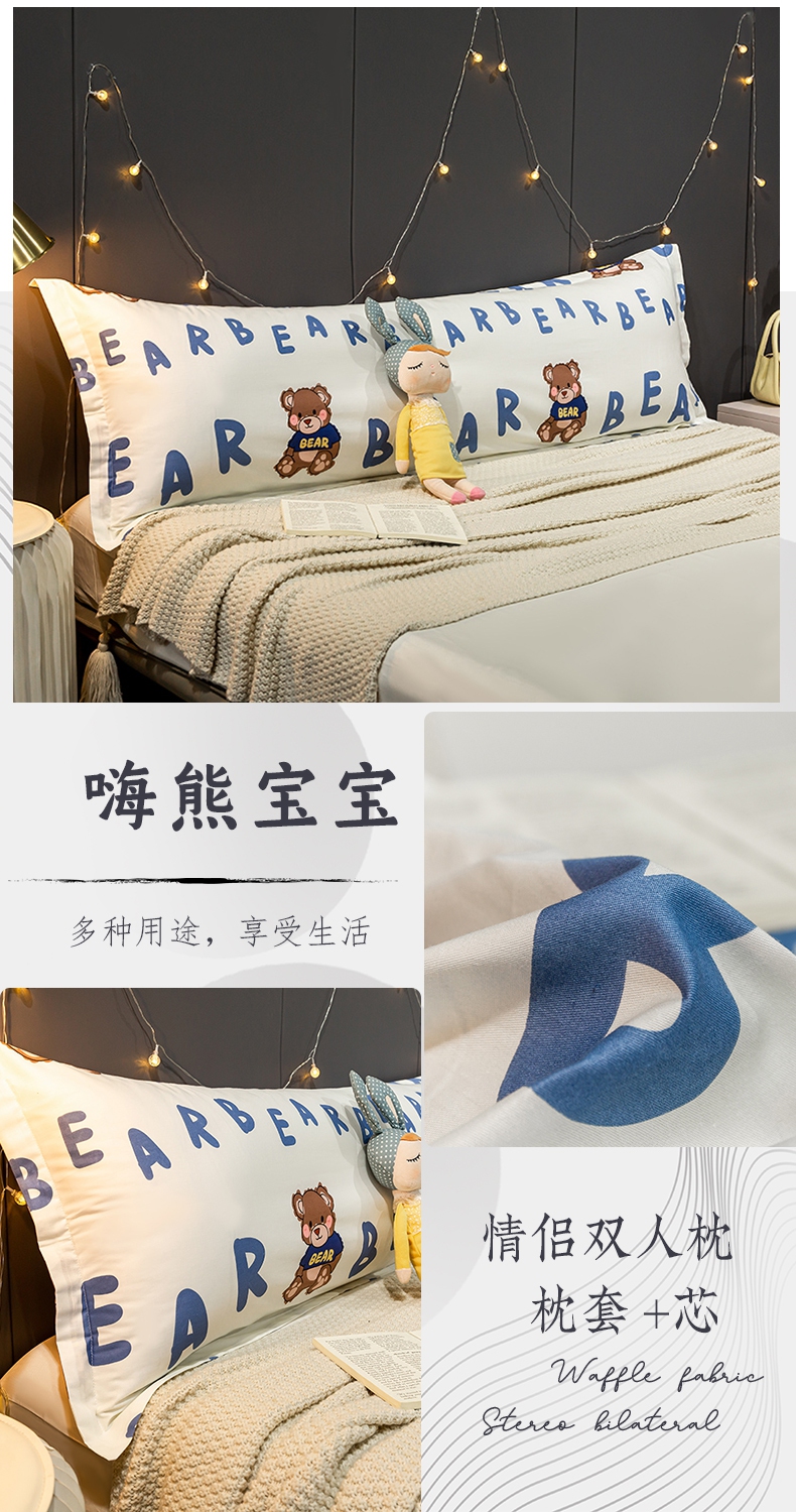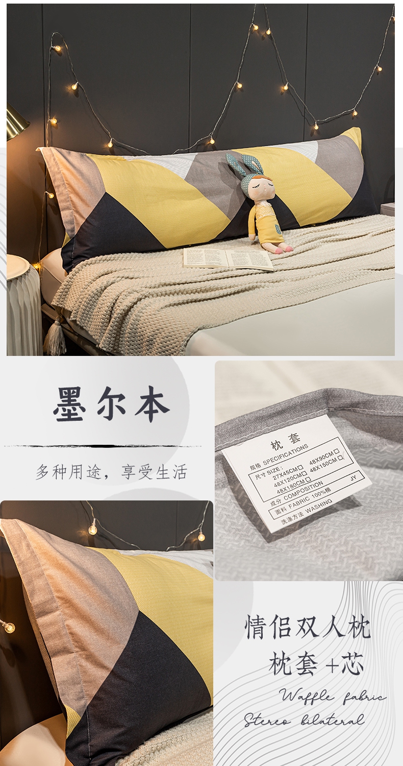 自然醒ins风情侣双人长枕头套纯棉家用加长枕套单个枕芯内胆套1.8JY