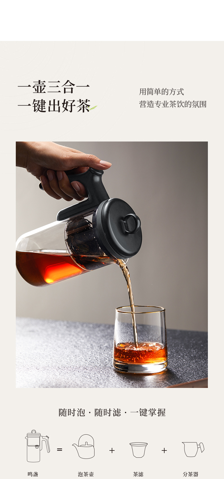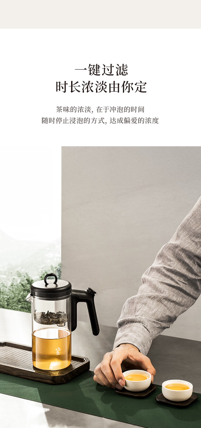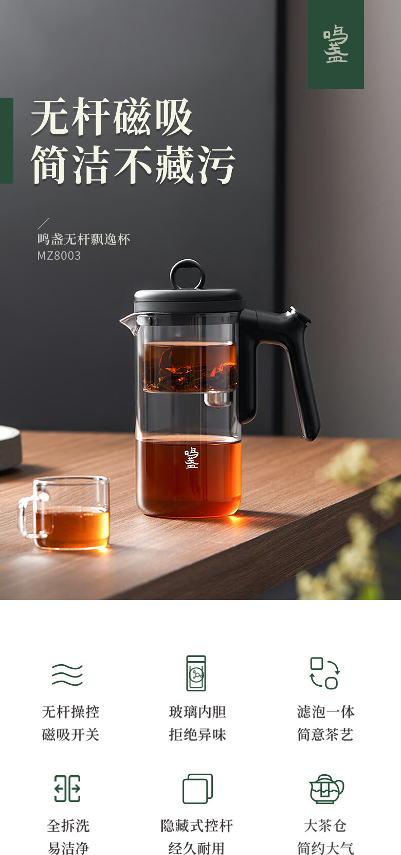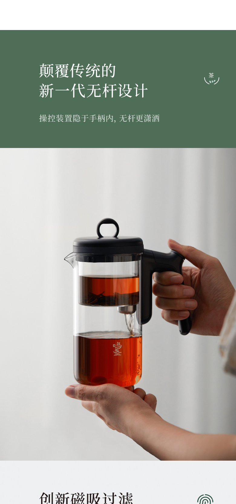 【小家电】鸣盏飘逸杯玻璃内胆按压式磁吸无杆泡茶壶茶水分离冲茶器茶具懒人茶壶 功夫茶壶MZ-8003 HF