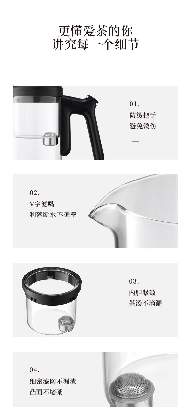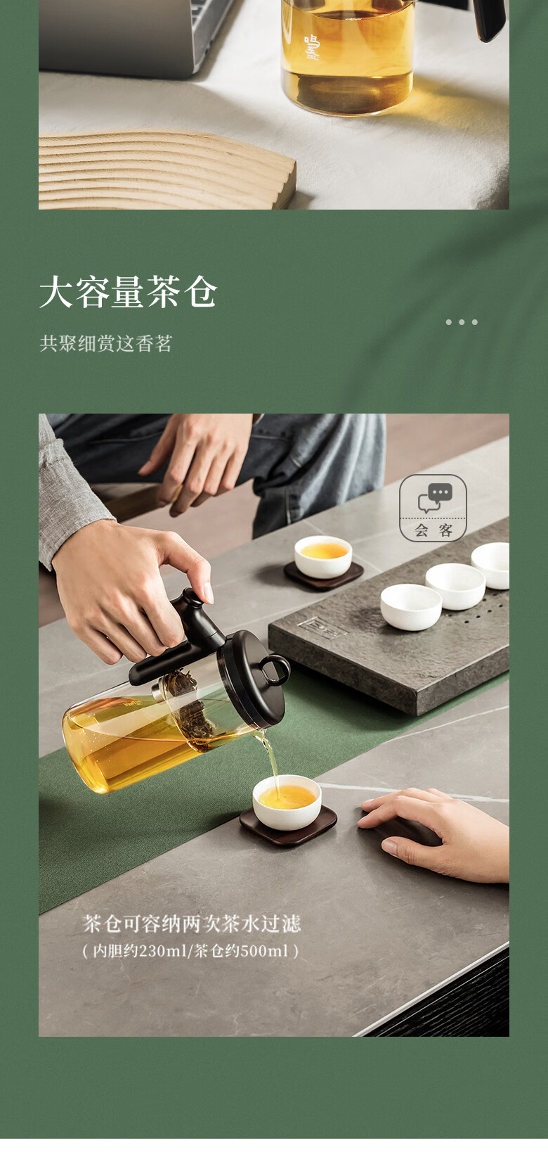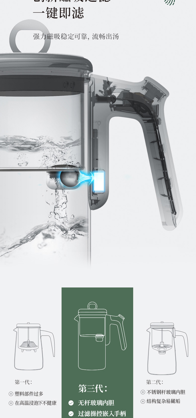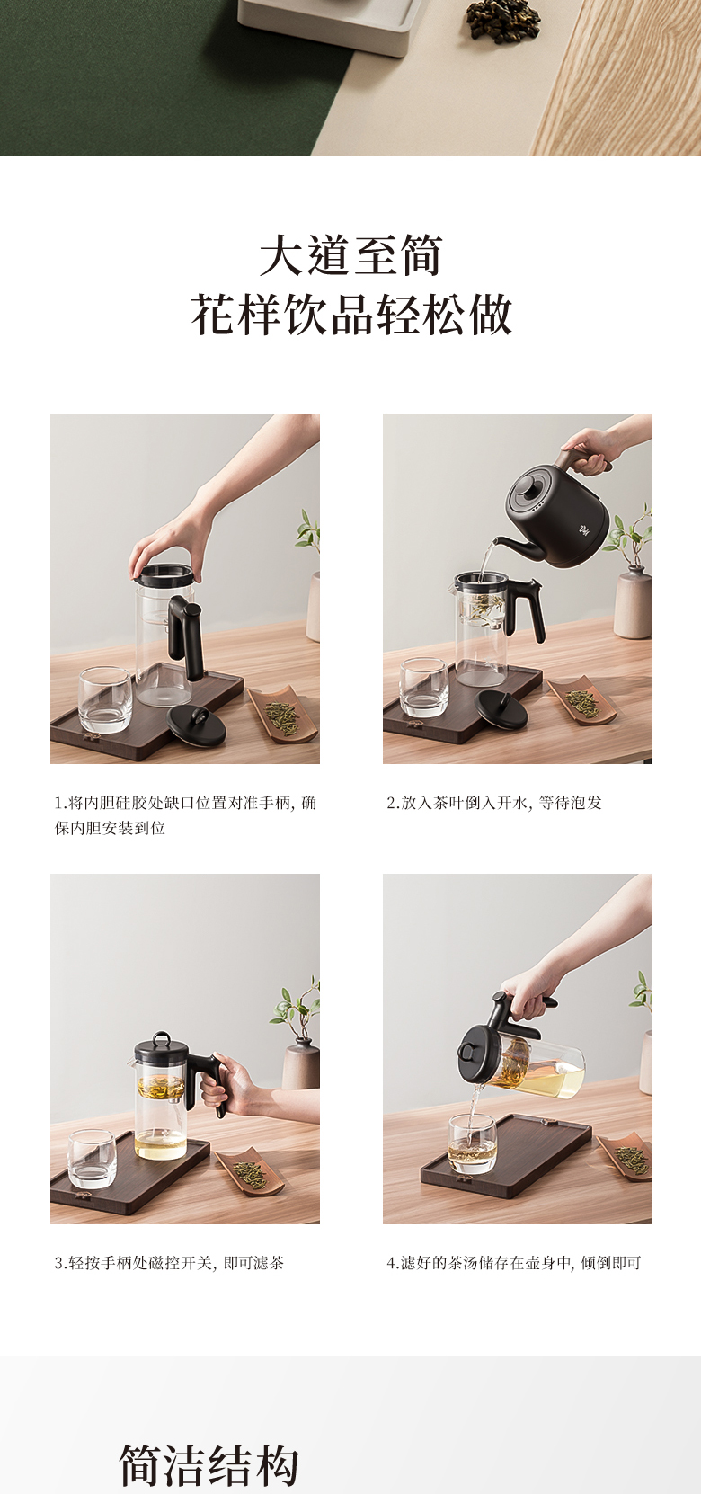【小家电】鸣盏飘逸杯玻璃内胆按压式磁吸无杆泡茶壶茶水分离冲茶器茶具懒人茶壶 功夫茶壶MZ-8003 HF