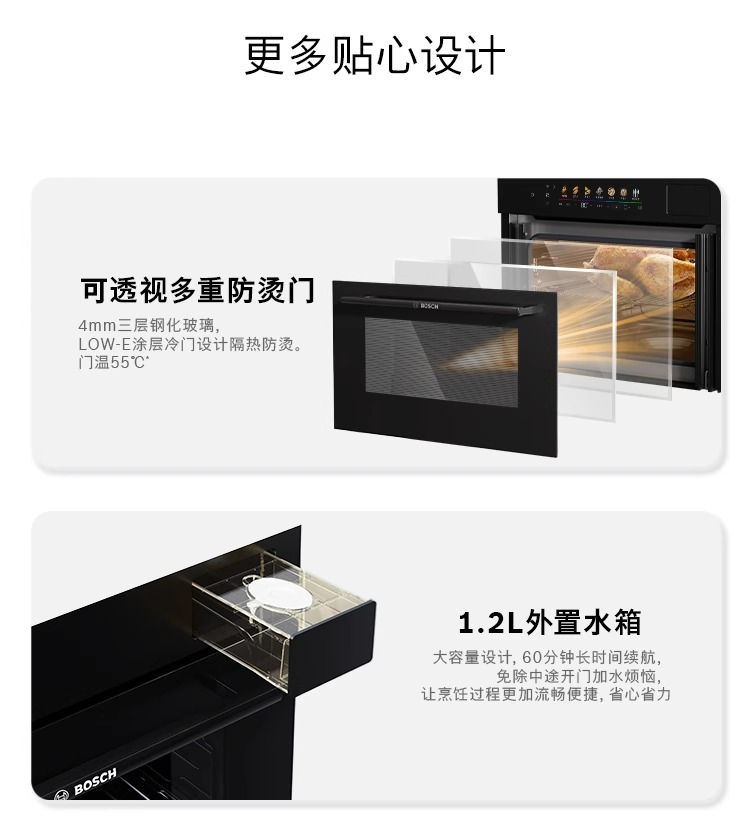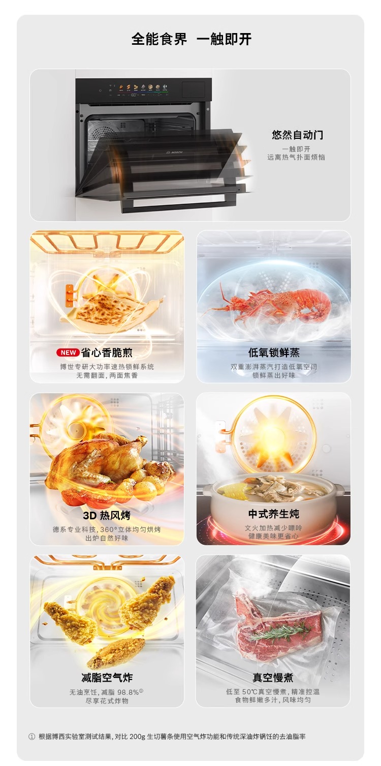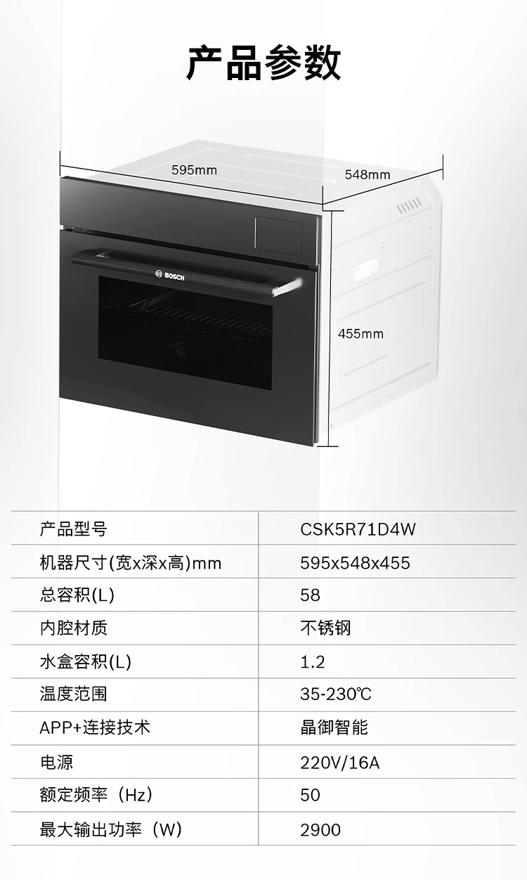 博世(BOSCH)6系御器启触款 低氧锁鲜蒸 3D热风烤 减脂空气炸六合一蒸烤一体机CSK5R71D4W