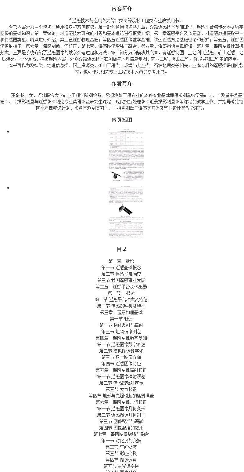《遥感技术与应用》(汪金花,张永彬,宋利杰)
