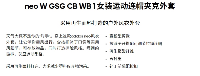 adidas阿迪达斯官网neo女装春季新款运动连帽夹克外套HM7438