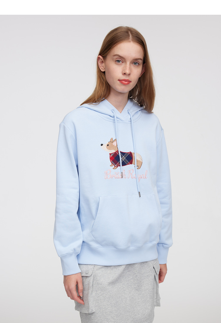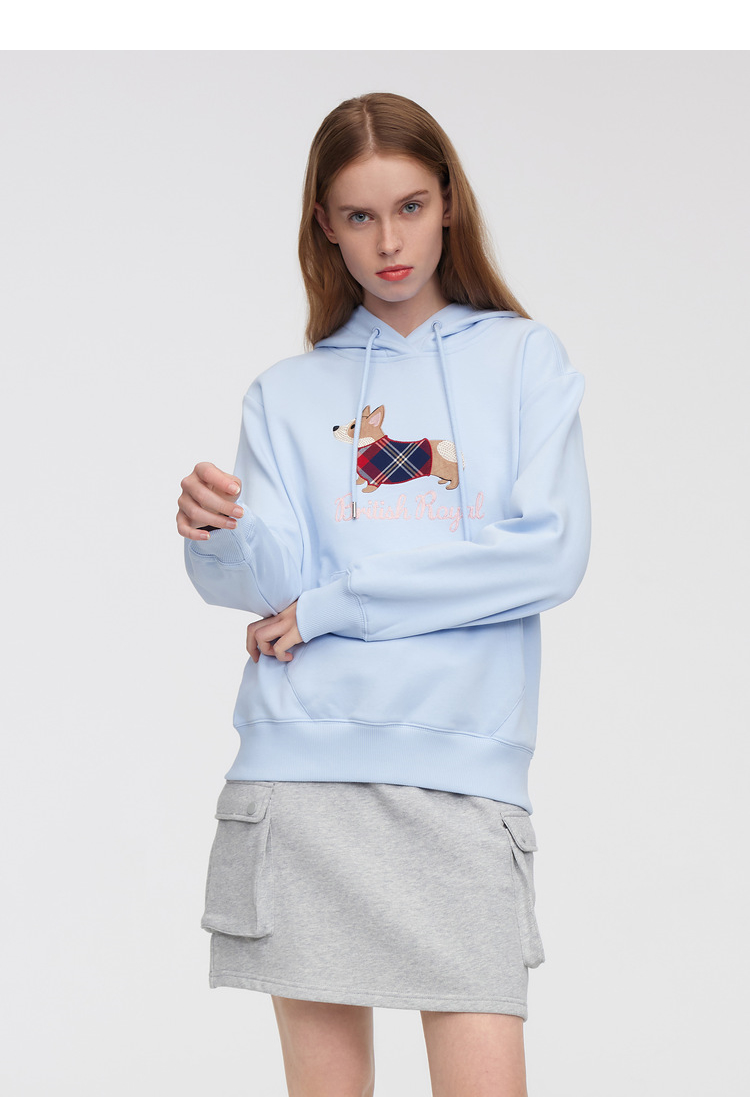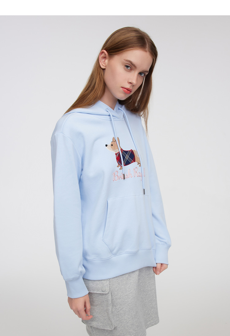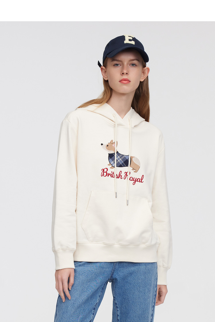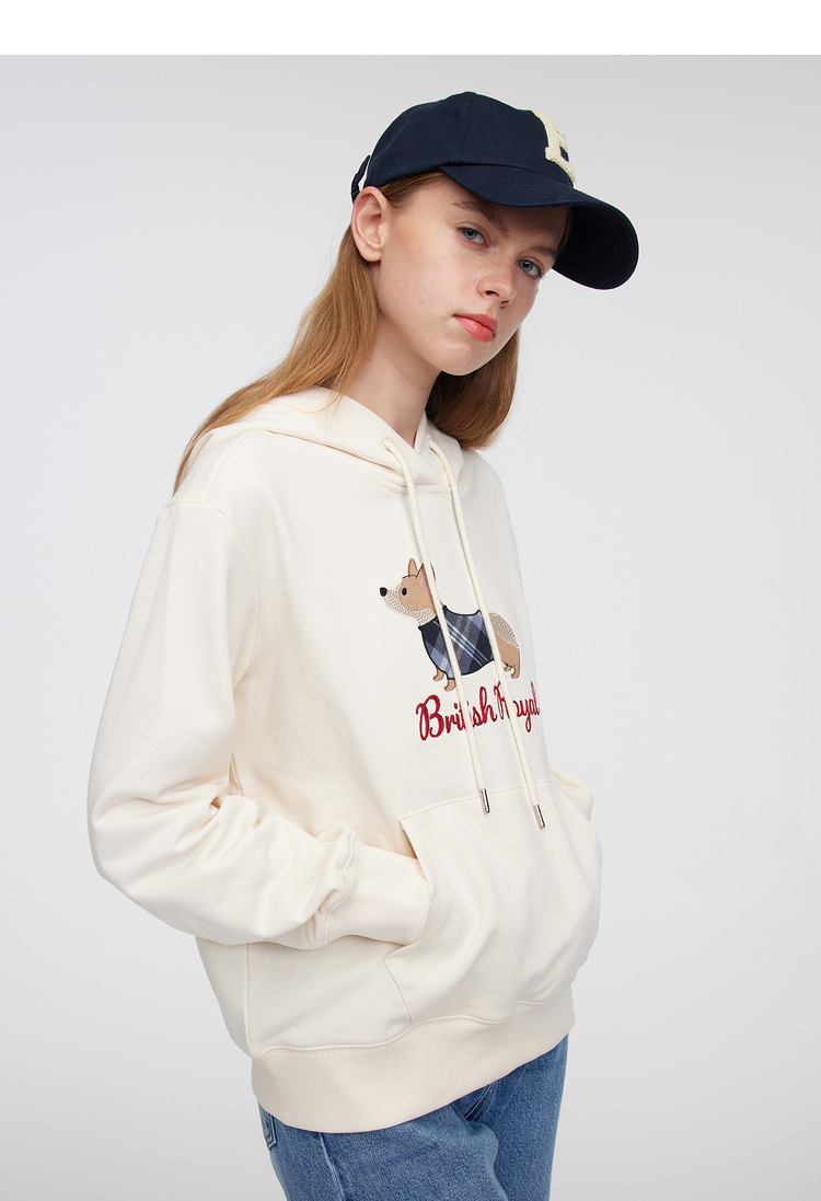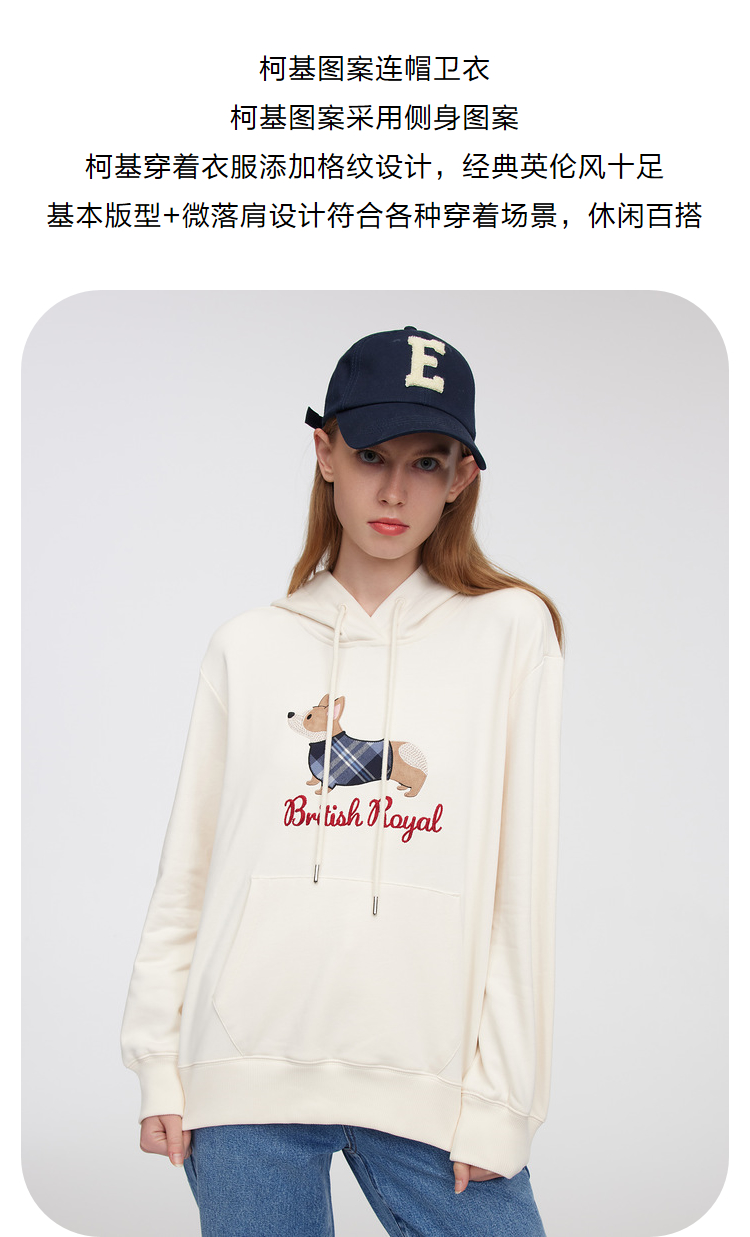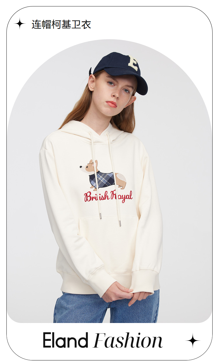 ELAND衣恋宽松甜美柯基帽衫EEMTC11H2C