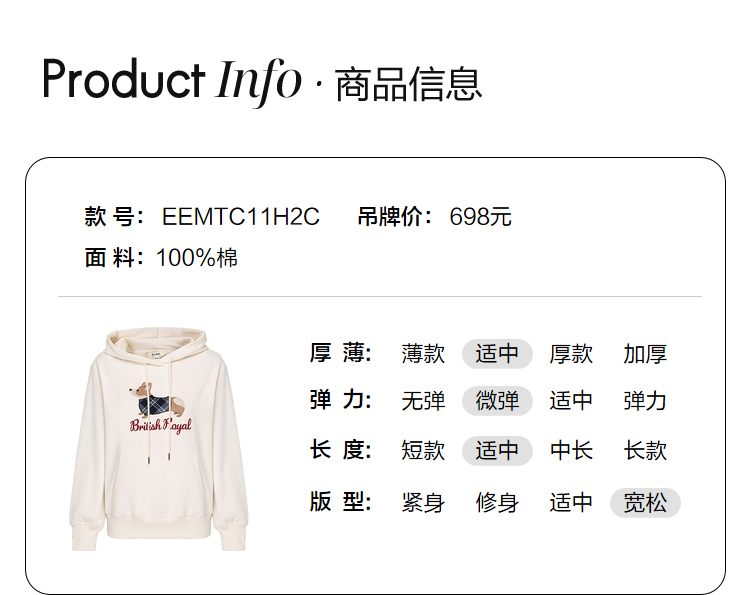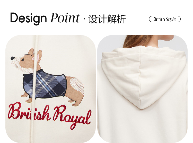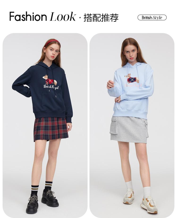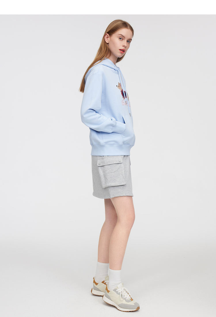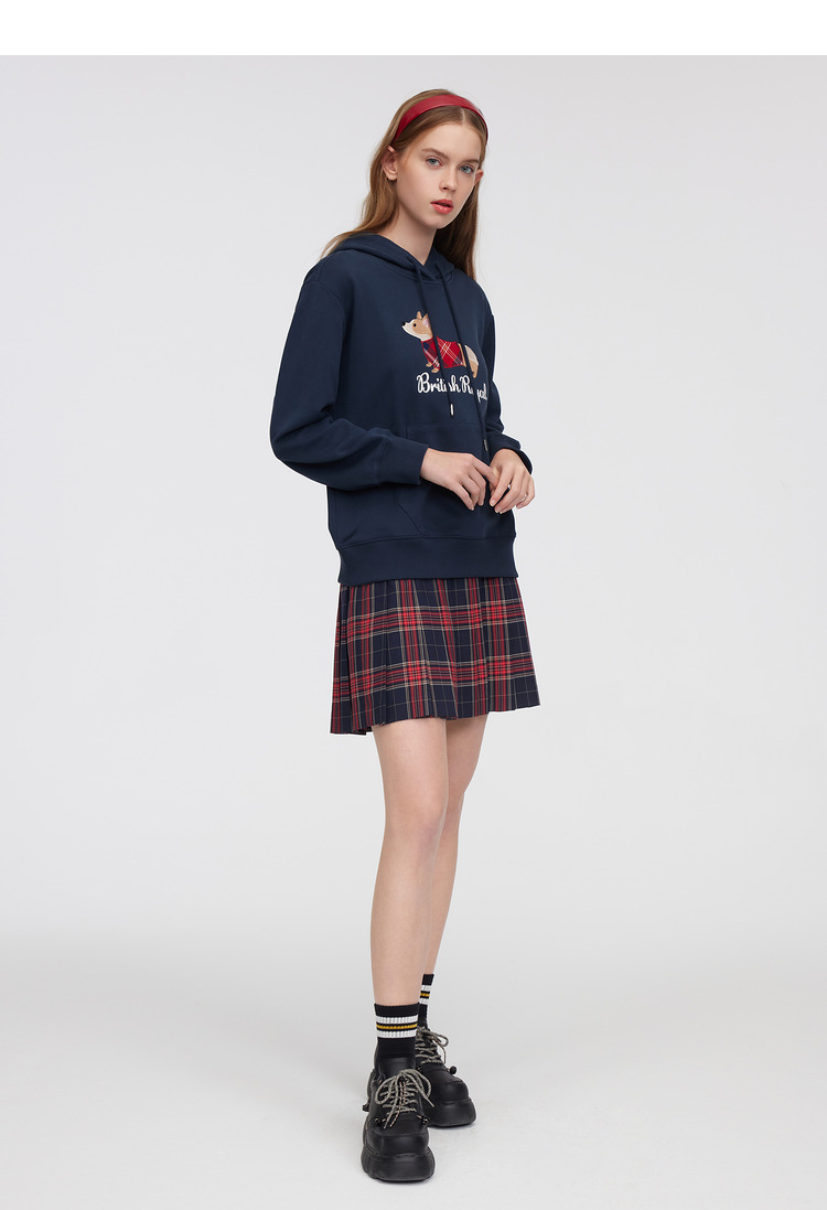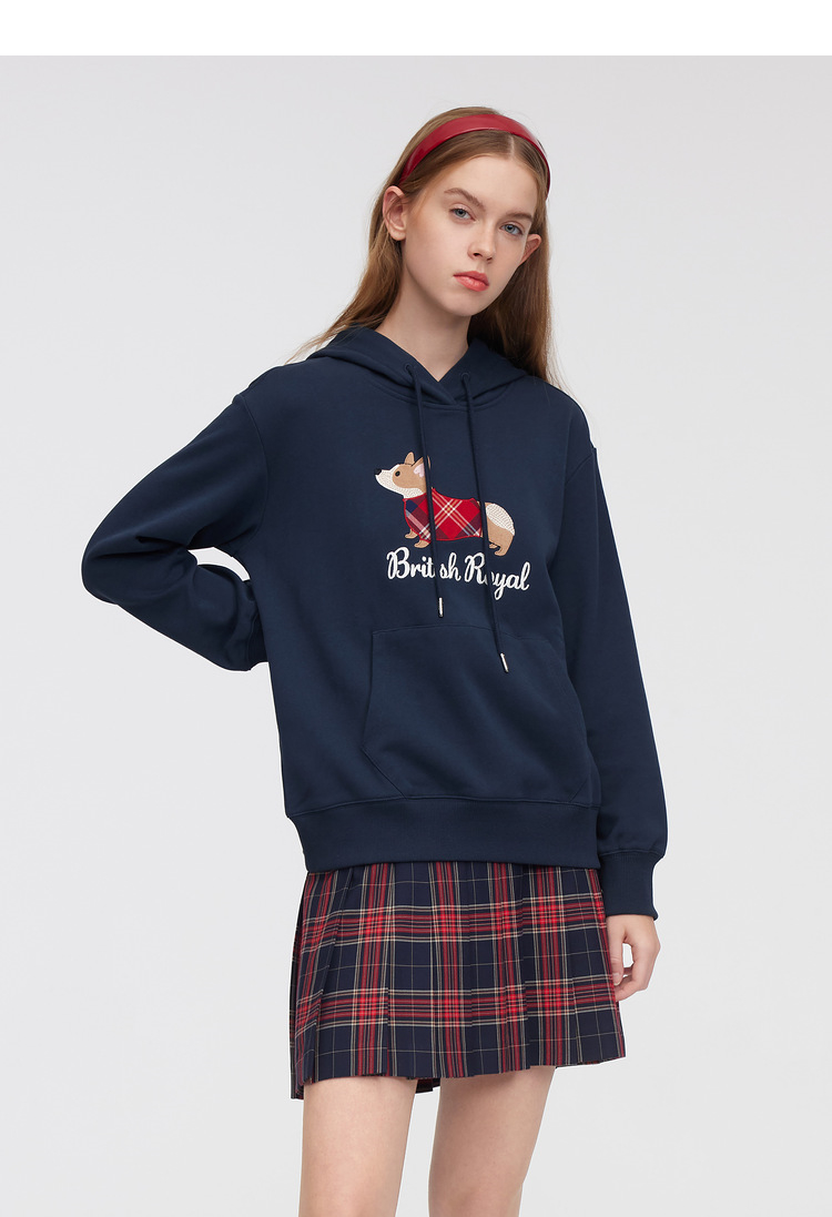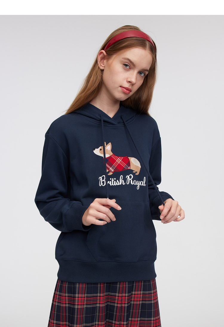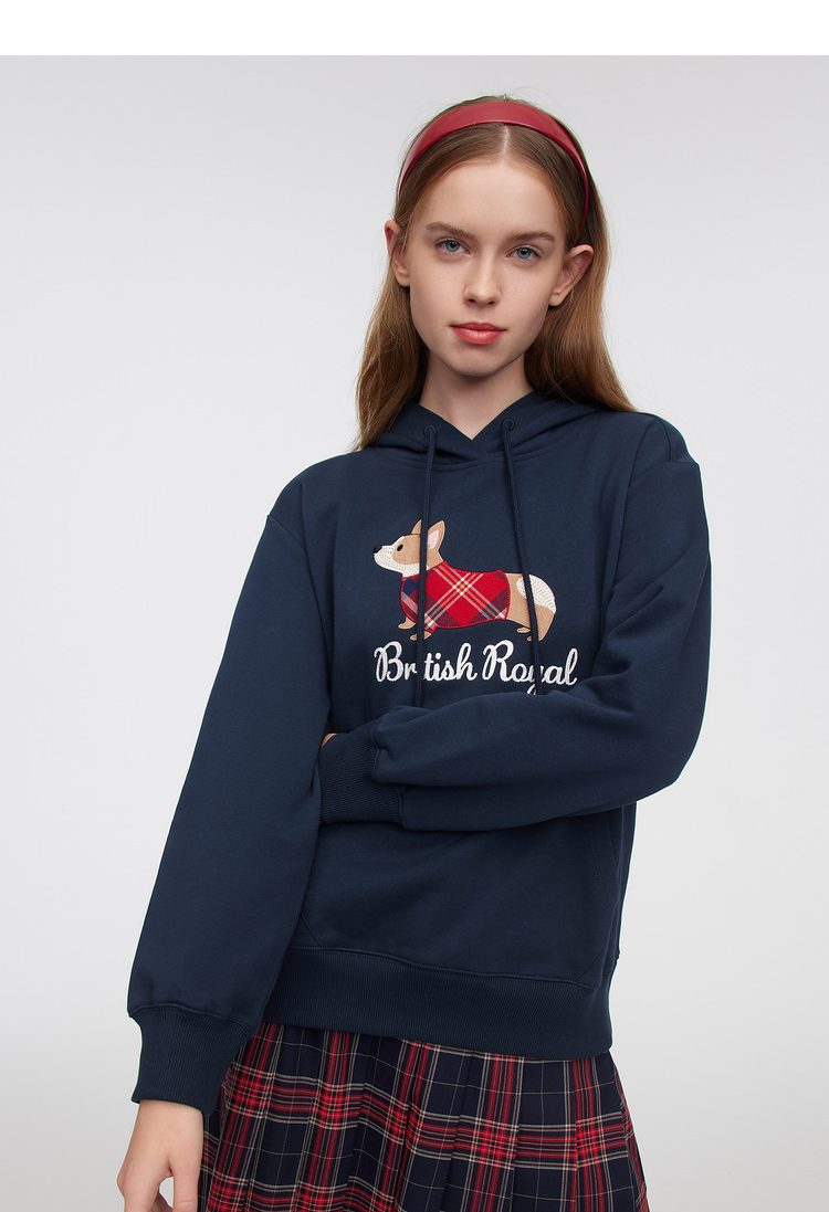 ELAND衣恋宽松甜美柯基帽衫EEMTC11H2C