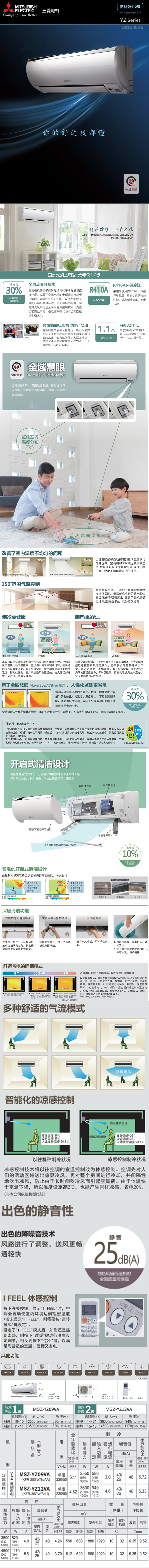 三菱电机MSZ-YZ09VA 1匹 挂机 空调 变频 冷暖 白色
