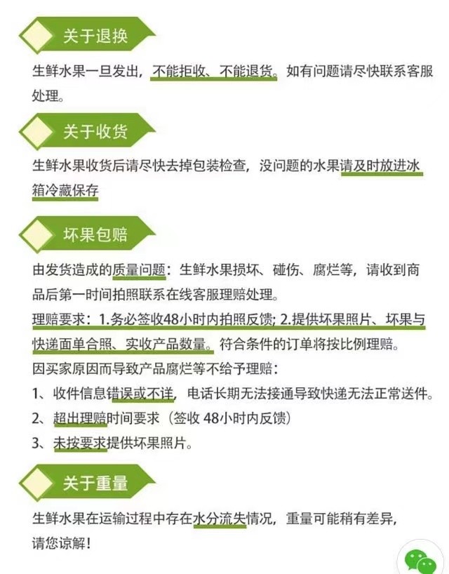 【售后标准】:农场担心生鲜出现损耗所以每件包裹都会多装半斤用于折损,如果损耗不超过半斤是不予理赔的, 感谢理解。