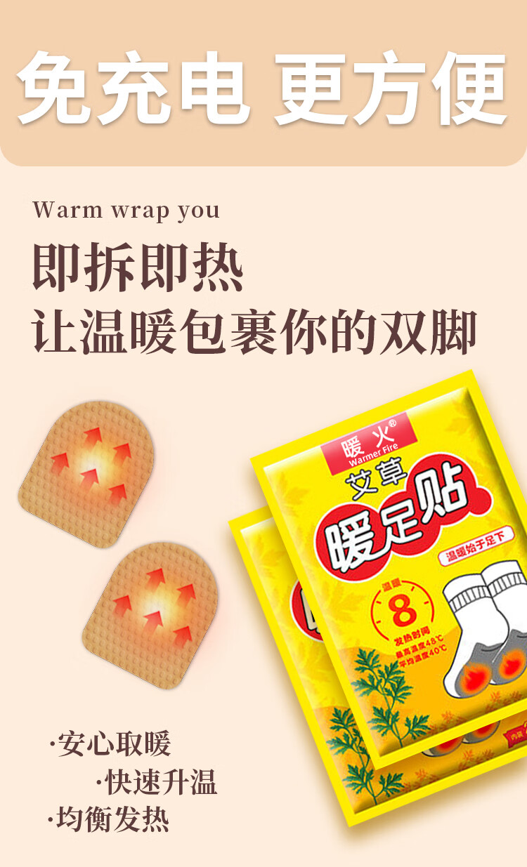 暖火 艾草暖足贴【暖脚宝60片】发热暖宝宝贴暖脚神器脚底热敷保暖贴 100046397429