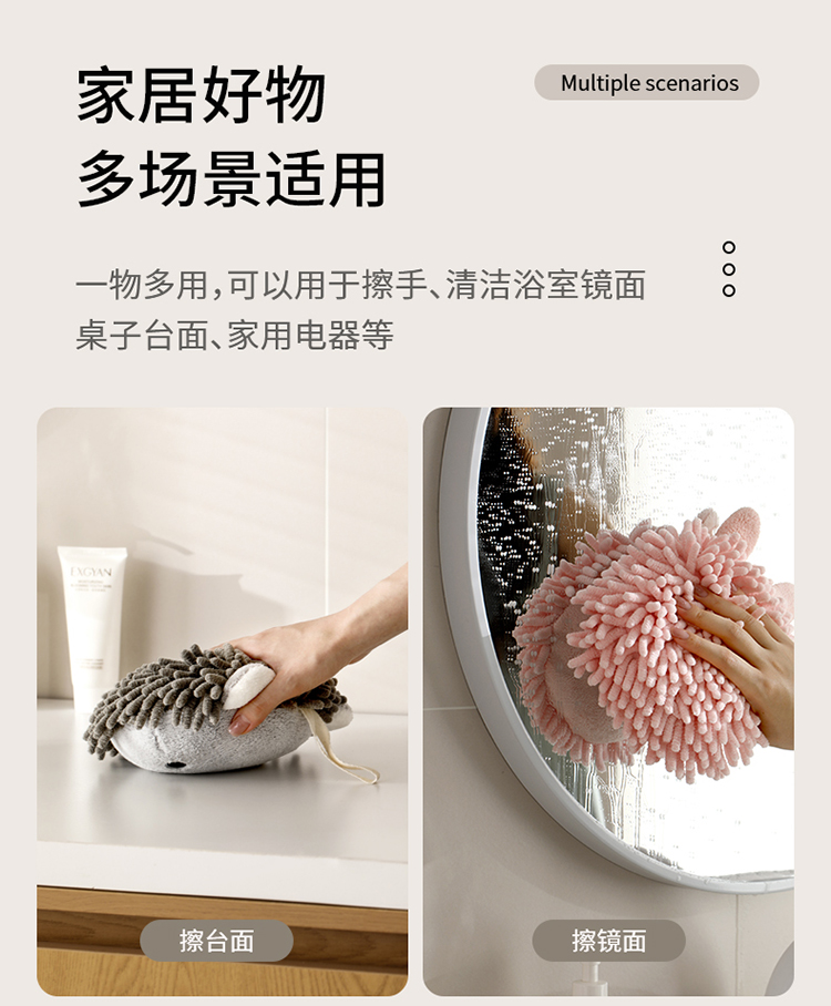 FaSoLa日式雪尼尔擦手球挂式擦手巾厨房加厚吸水速干卫生间可爱抹布