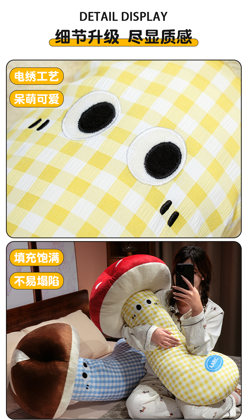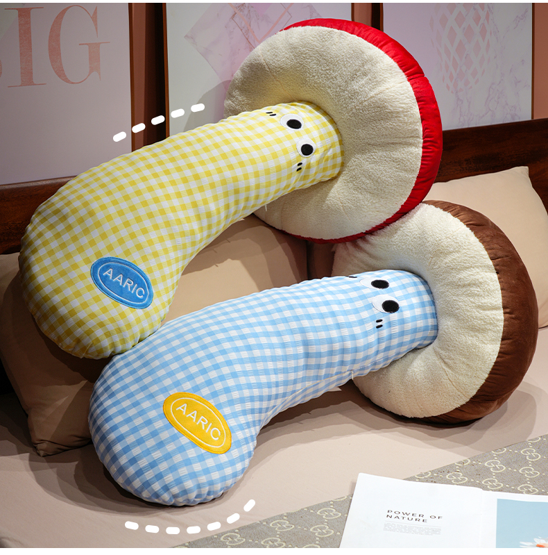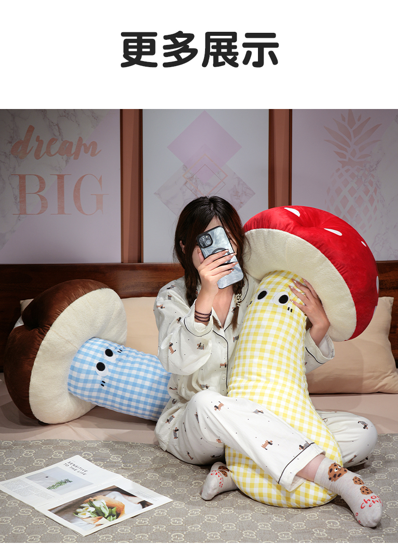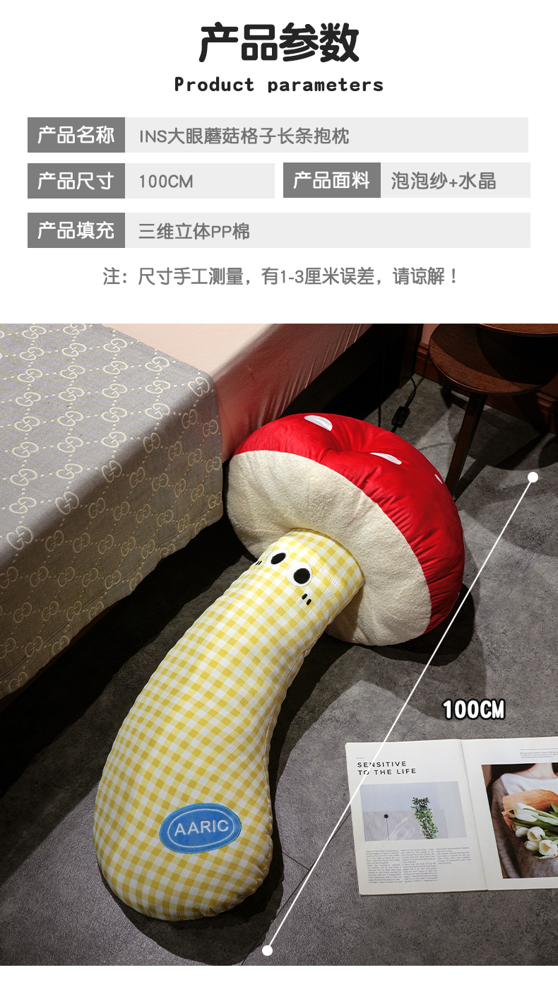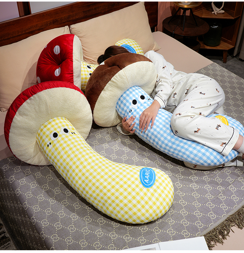 自然醒ins大眼蘑菇格子长条抱枕QYL