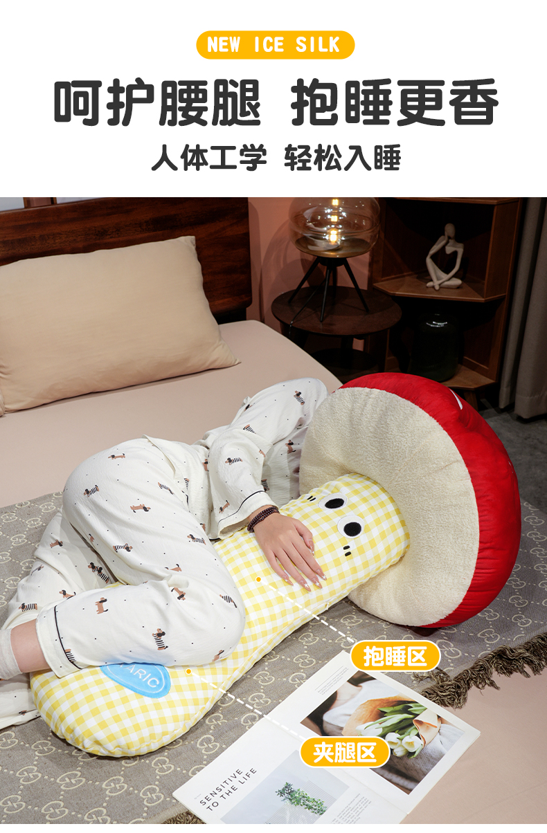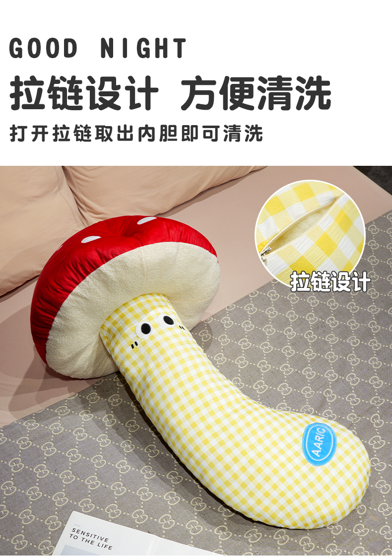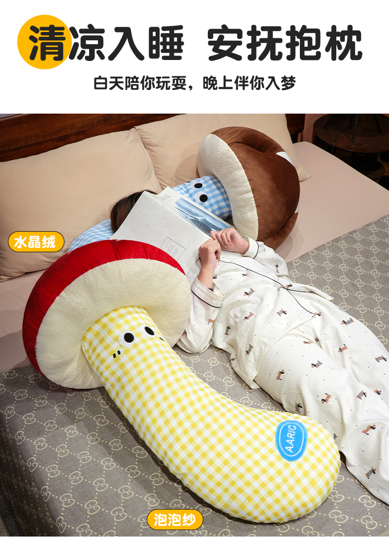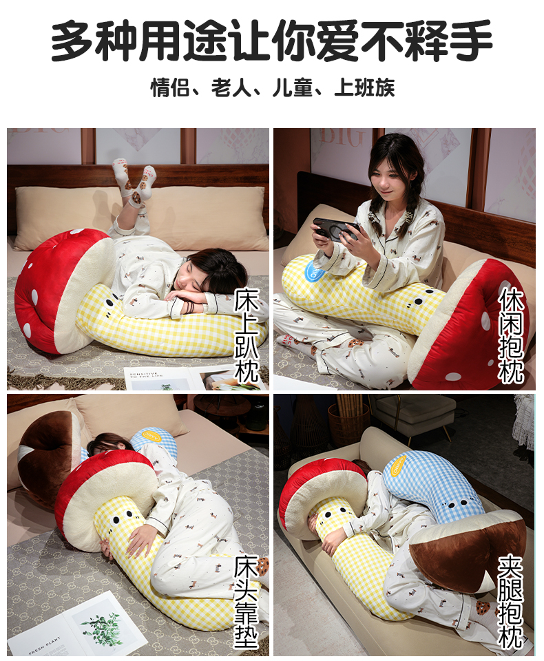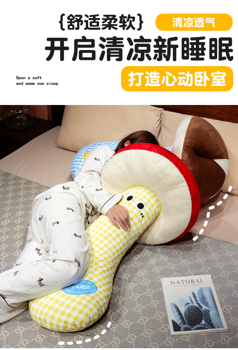 自然醒ins大眼蘑菇格子长条抱枕QYL