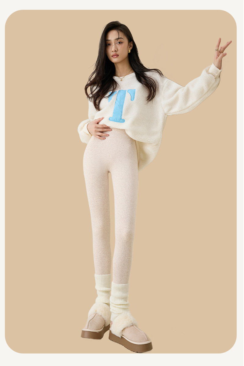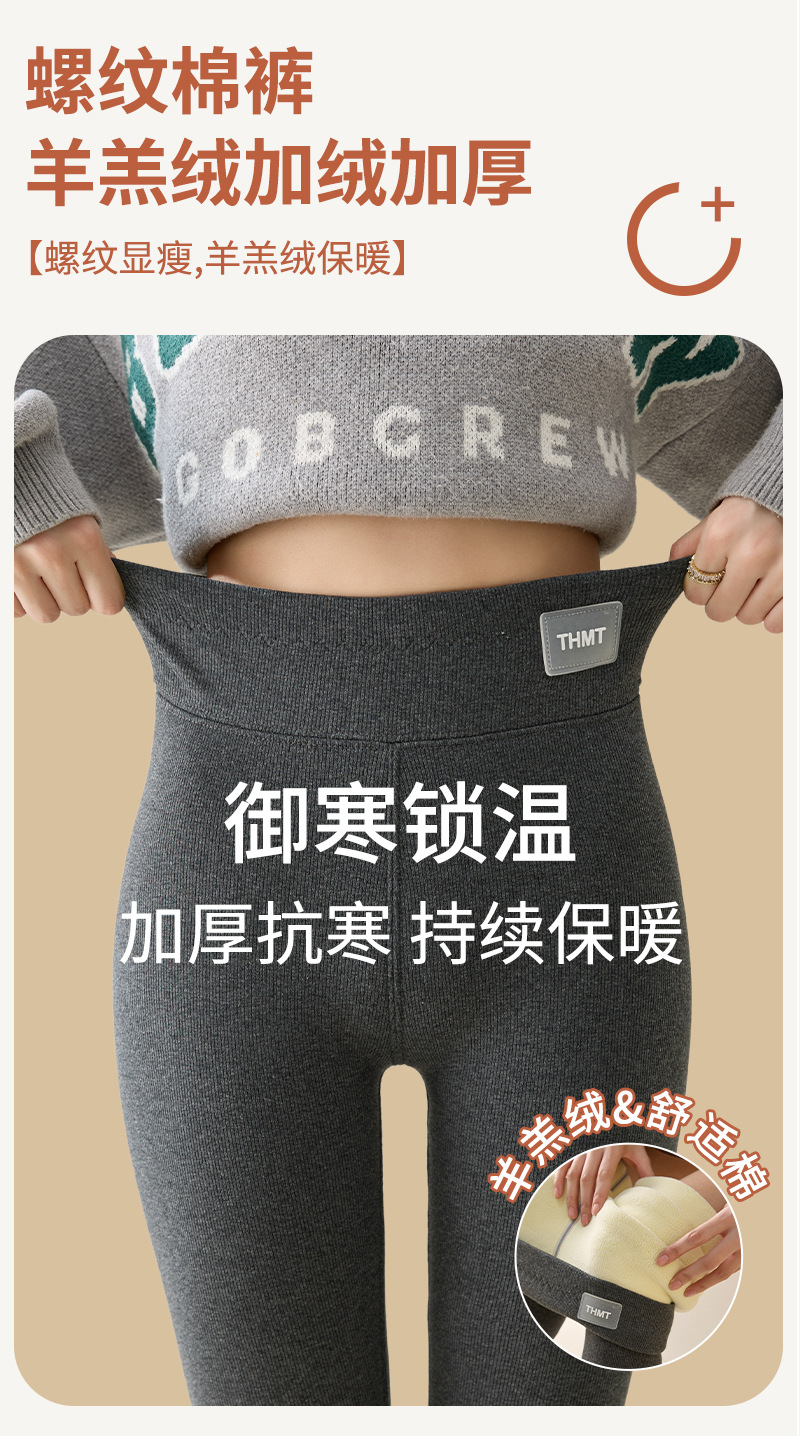 特厚加绒加厚高腰打底裤女冬季外穿螺纹显瘦小脚裤大码毛裤保暖裤秋冬新款