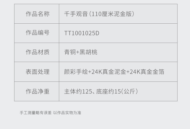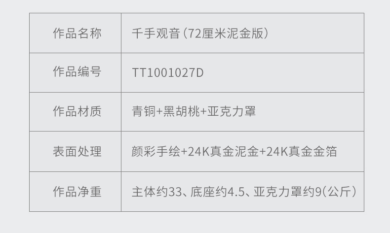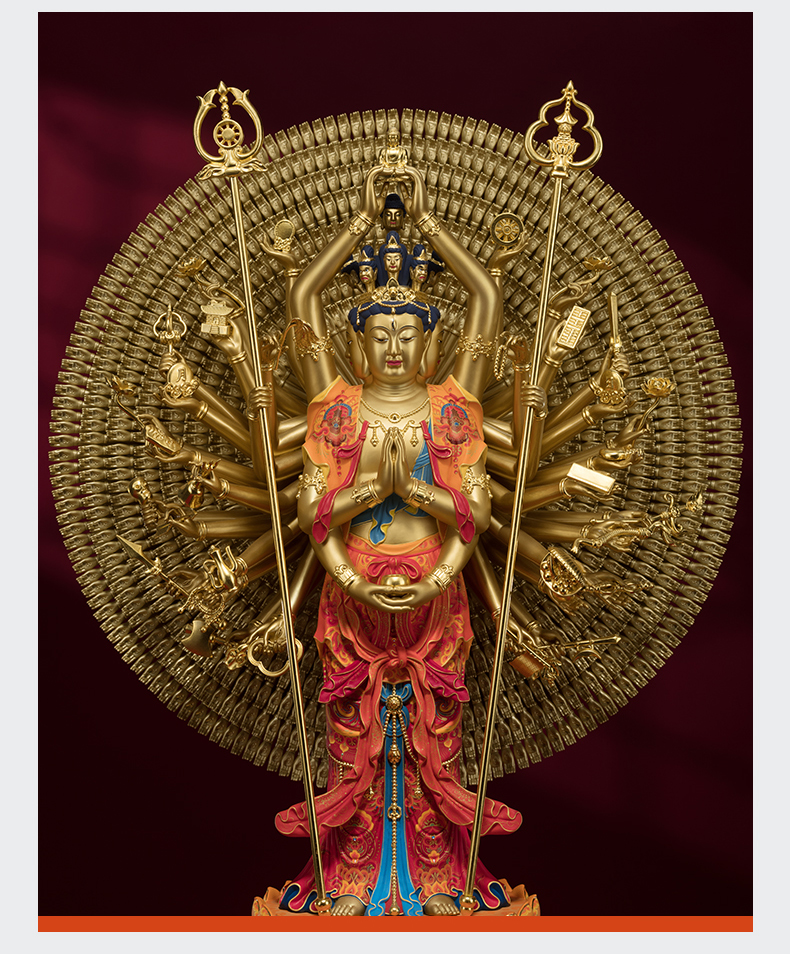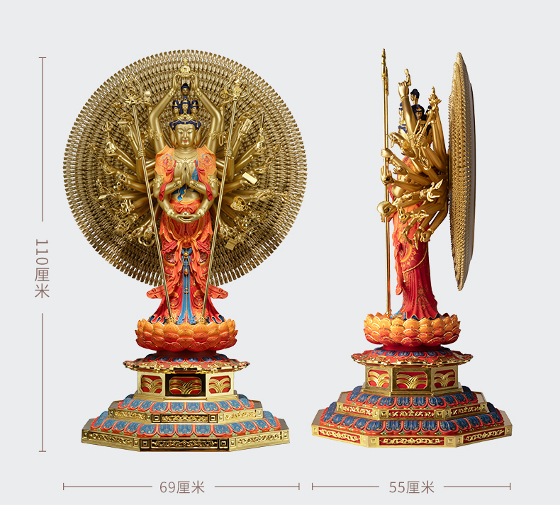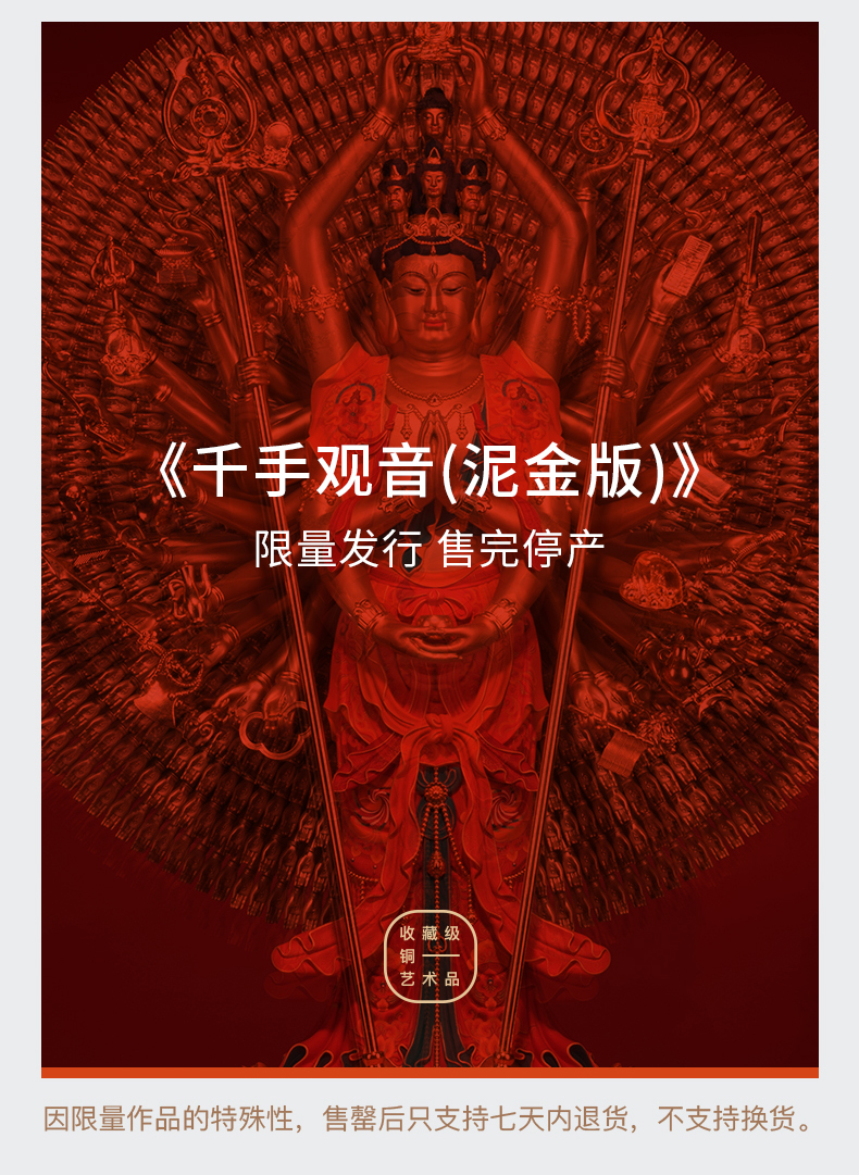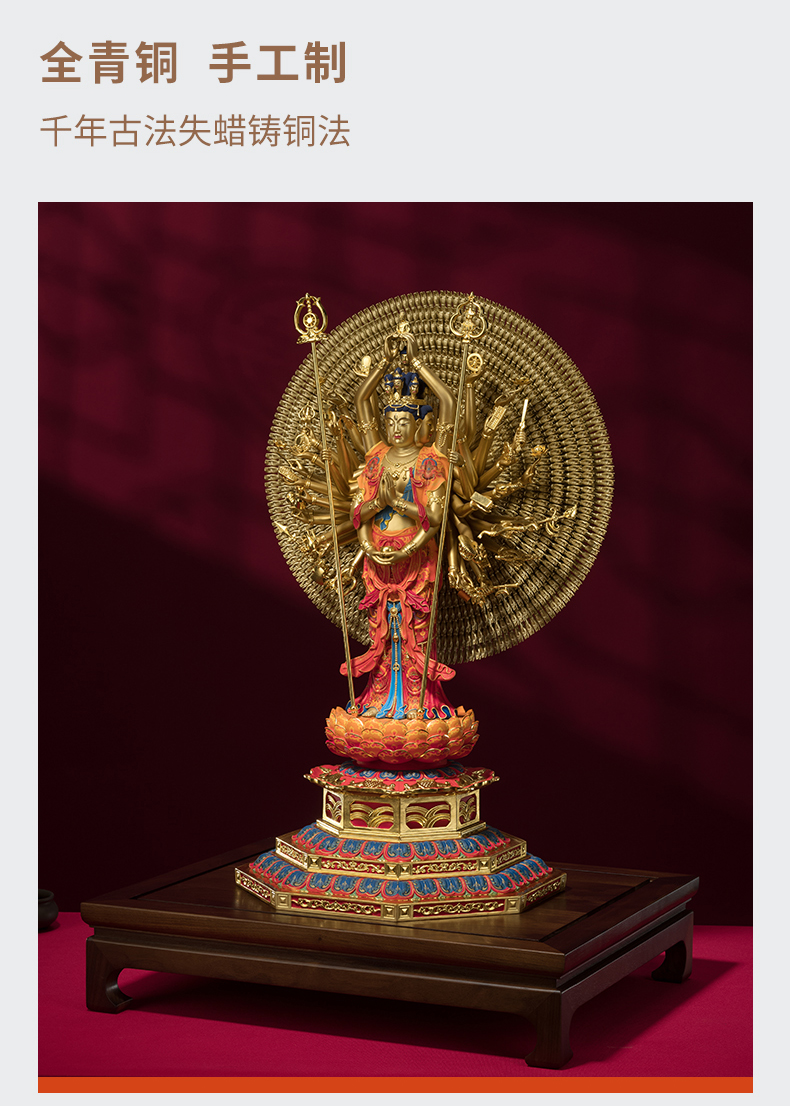太铜《千手观音(泥金版)》限量版 全青铜 佛堂大号观音佛像摆件