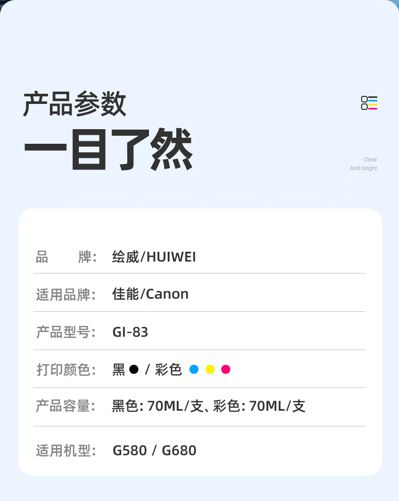 绘威GI-83墨水 适用佳能G680 G580 canon加墨式照片一体打印机墨水 墨盒 黑色