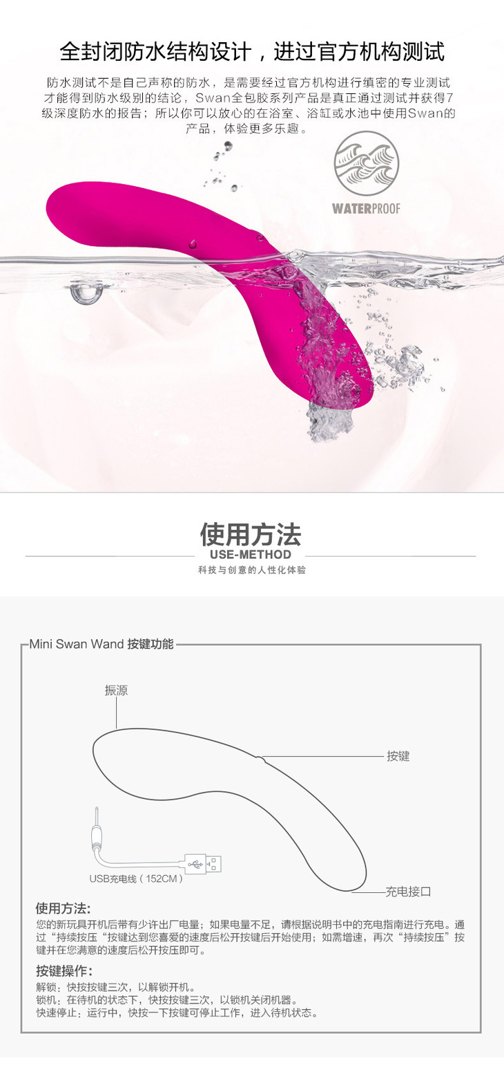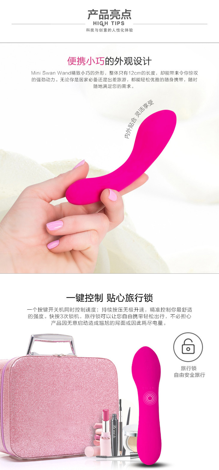 加拿大SWAN天鹅wand迷你震动随身便携静音防水私处快感高潮充电情趣用震动棒