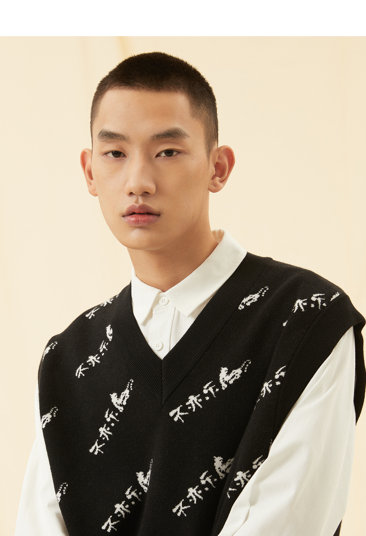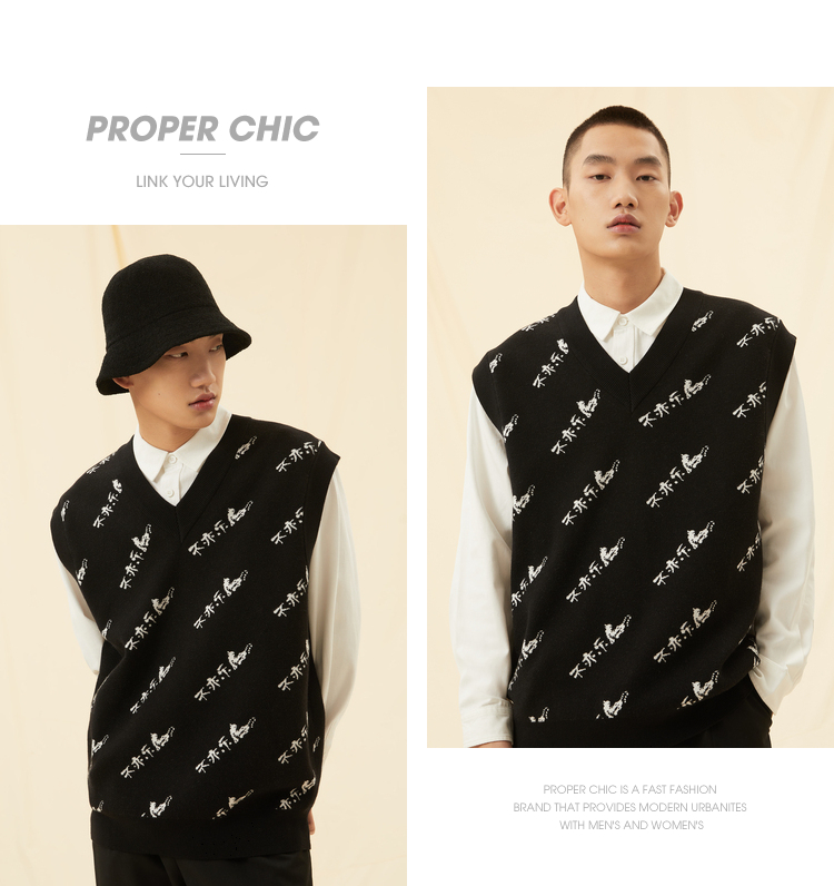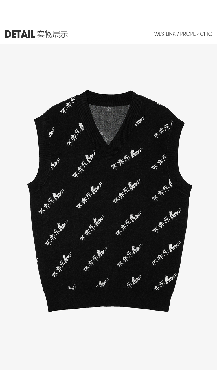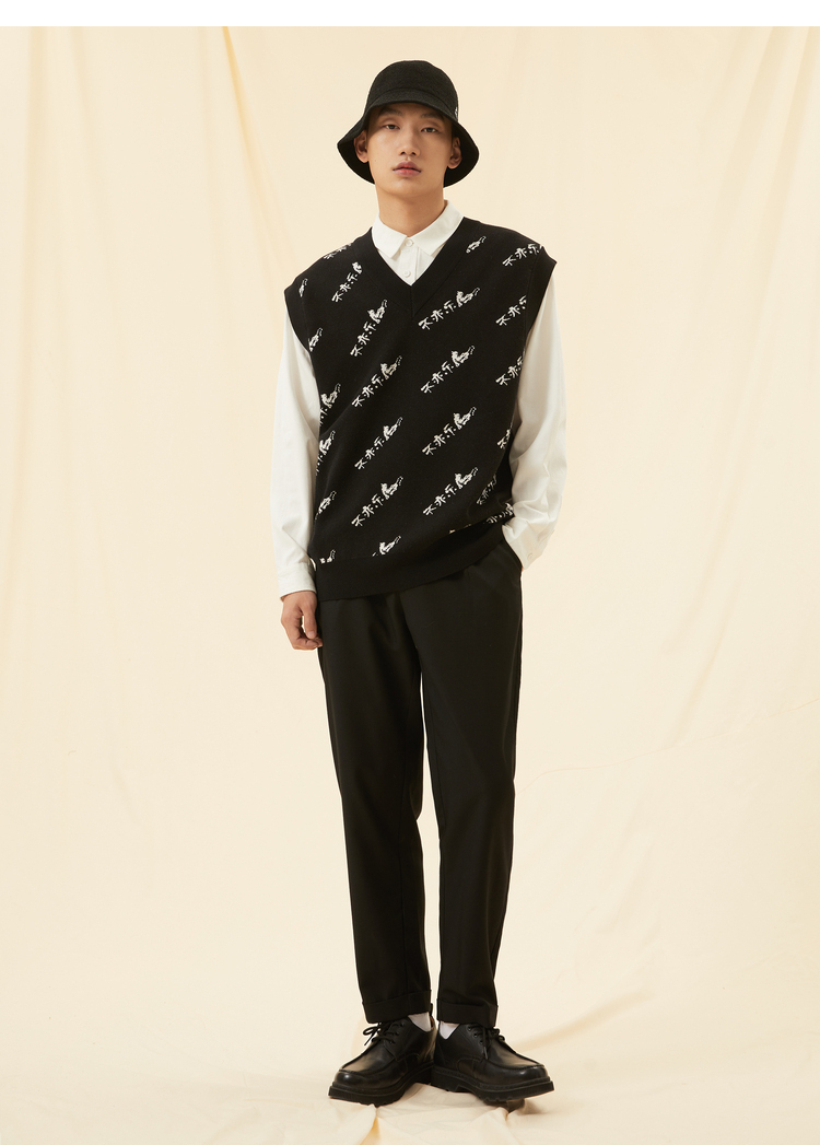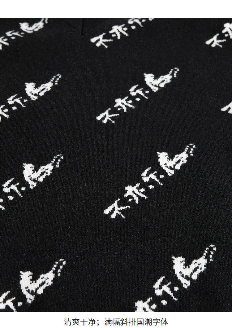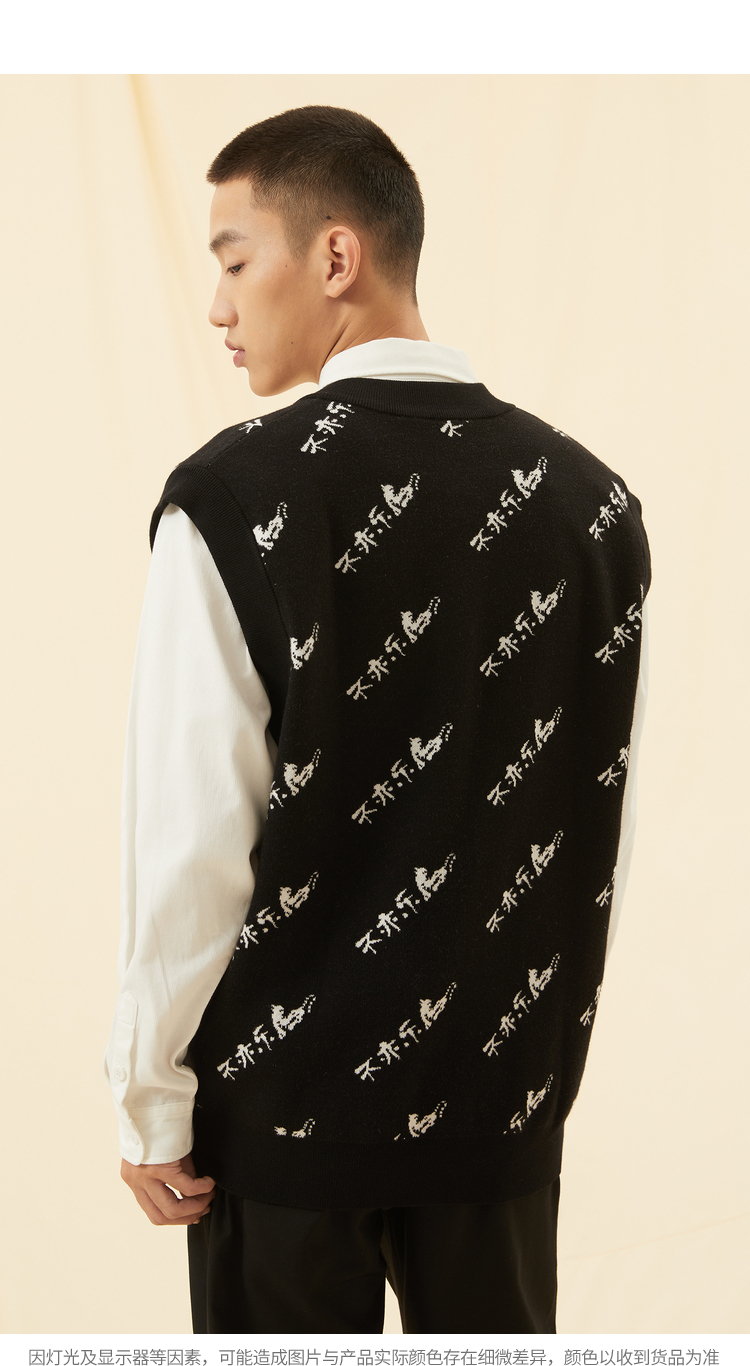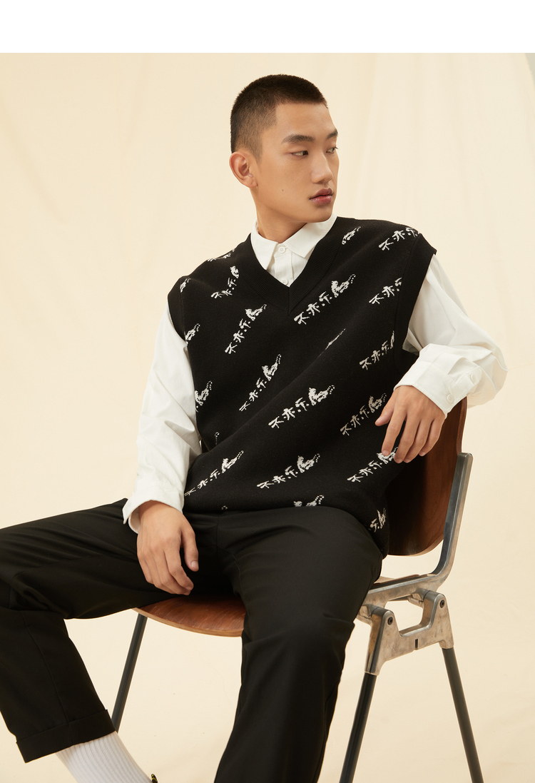 西遇V领毛衣背心男新款原宿风国潮虎针织马甲10122008