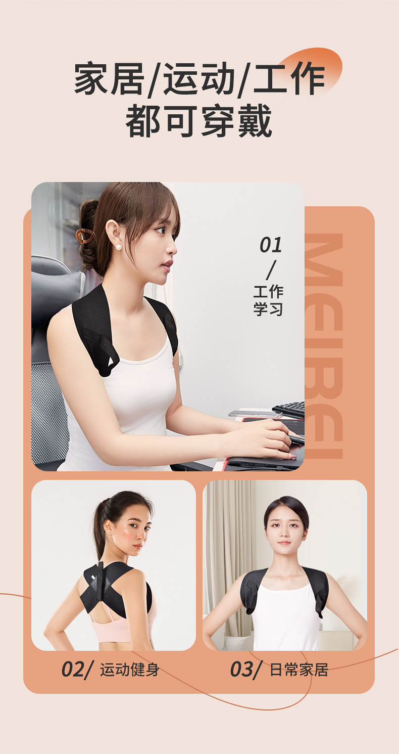 【每天两小时~穿出好气质!】开肩美背矫姿弹力带;透气柔软,姿态矫正;隐形设计,舒适不勒肩,自信展现。解放肩颈,摆脱驼背;学生上班族、健身人士必备良品!