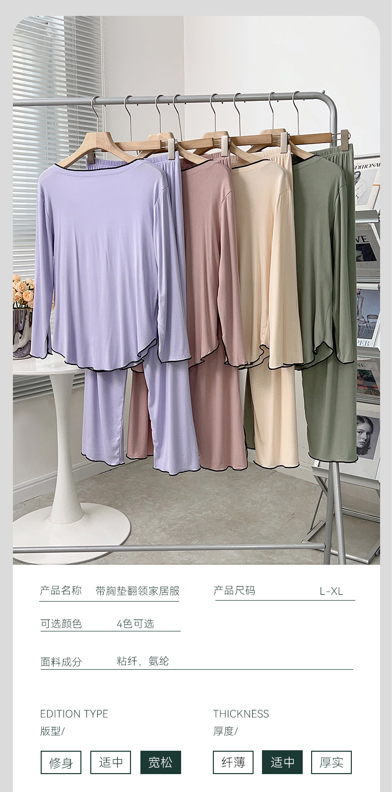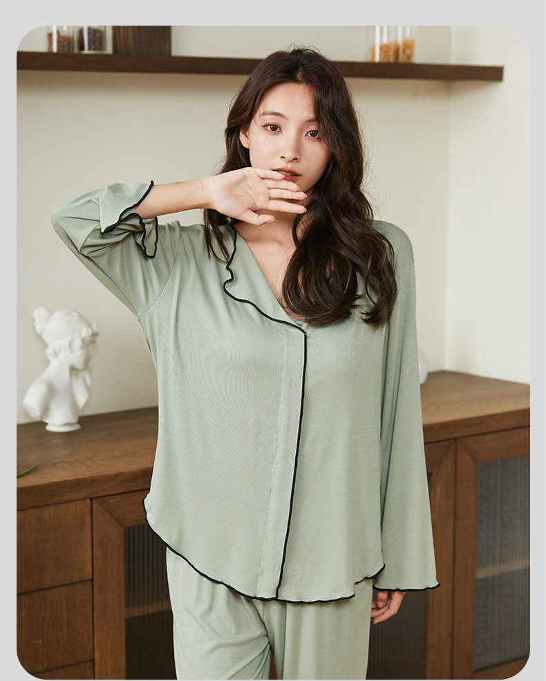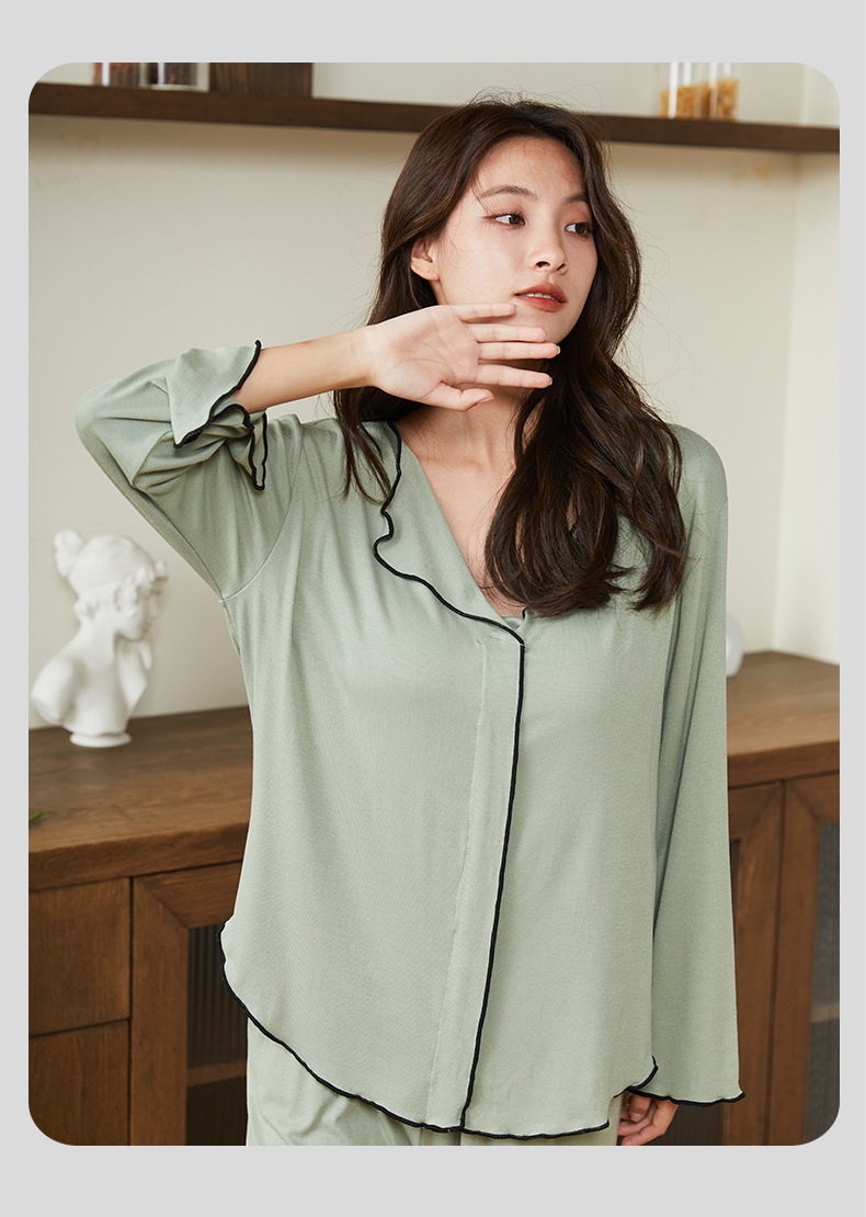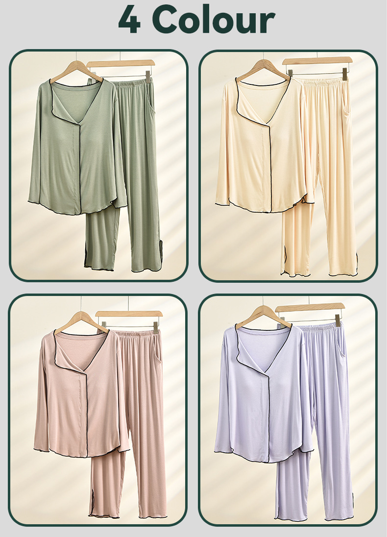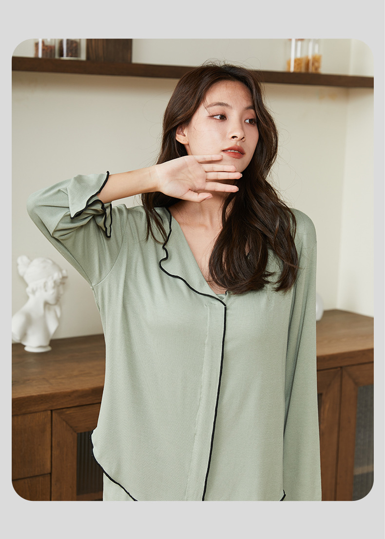 新款带胸垫睡衣女,开衫长袖套装。不仅可以在家中舒适地度过休闲时光,还可以随意外出。简约的翻领和宽松的设计让她感觉G级而舒适!