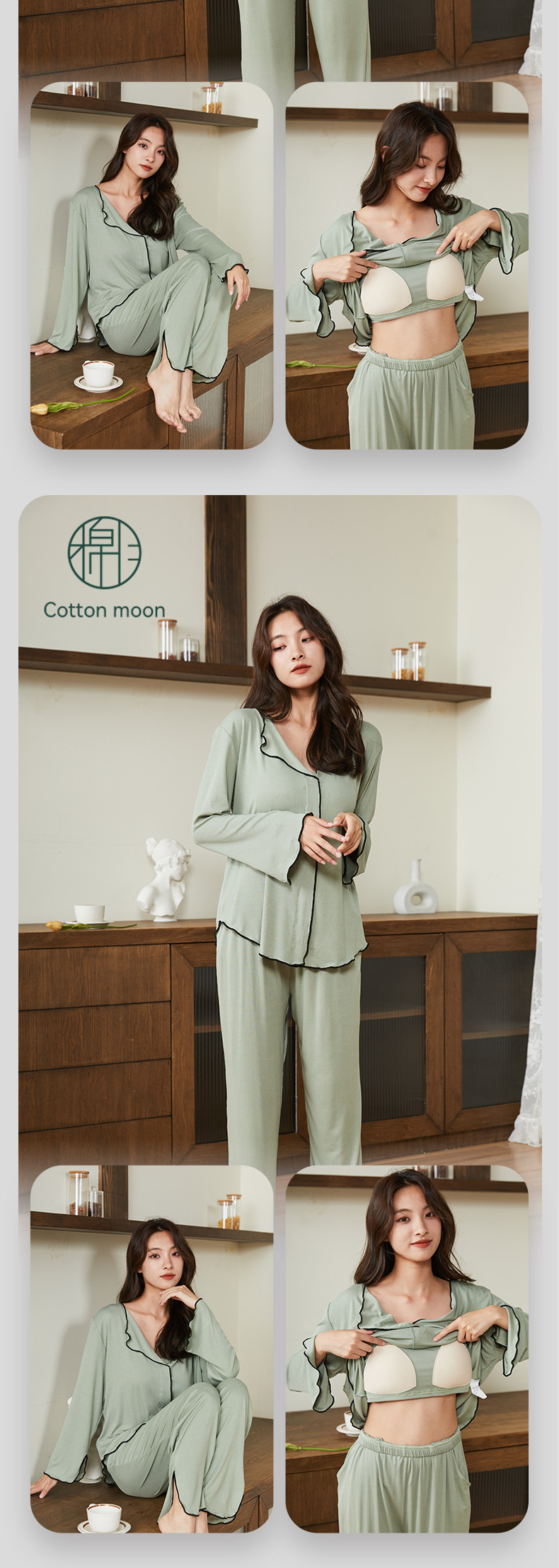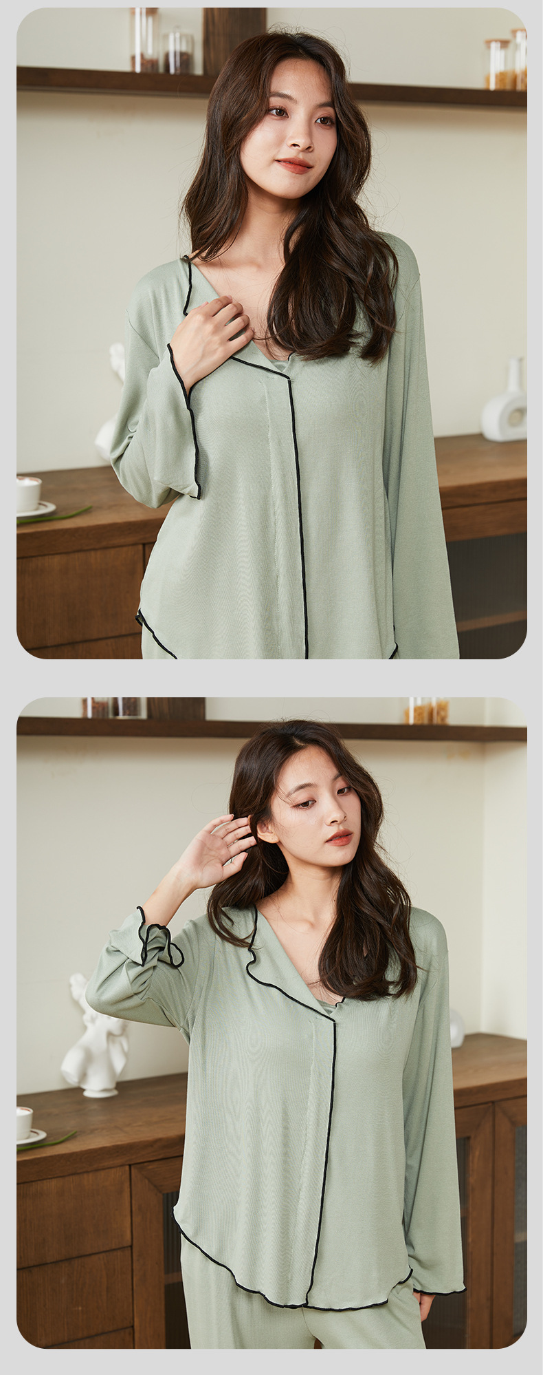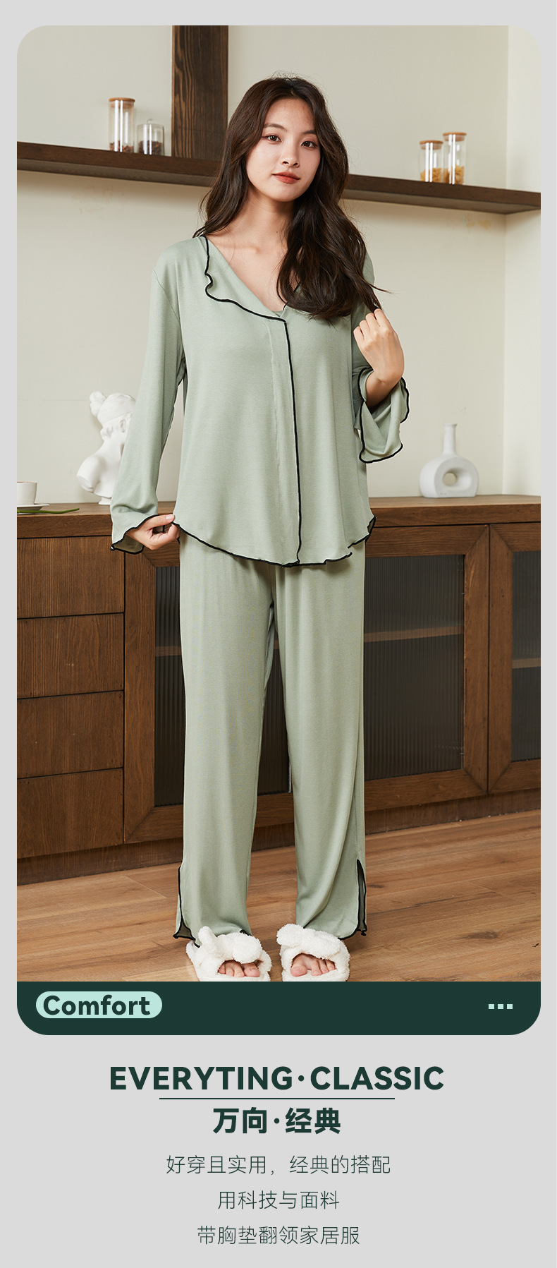 新款带胸垫睡衣女,开衫长袖套装。不仅可以在家中舒适地度过休闲时光,还可以随意外出。简约的翻领和宽松的设计让她感觉G级而舒适!