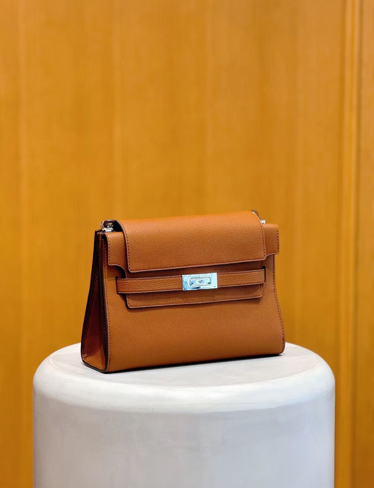 . 高度: 17.5cm; 长度` 26cm; 深度: 8cm 。 面料:牛皮革 里料;牛剖层革 . 翻盖开合, 背带设有搭扣 . 可调节肩带, 垂直携带高度为29cm • 1个正面隔层,1个内部拉链口袋