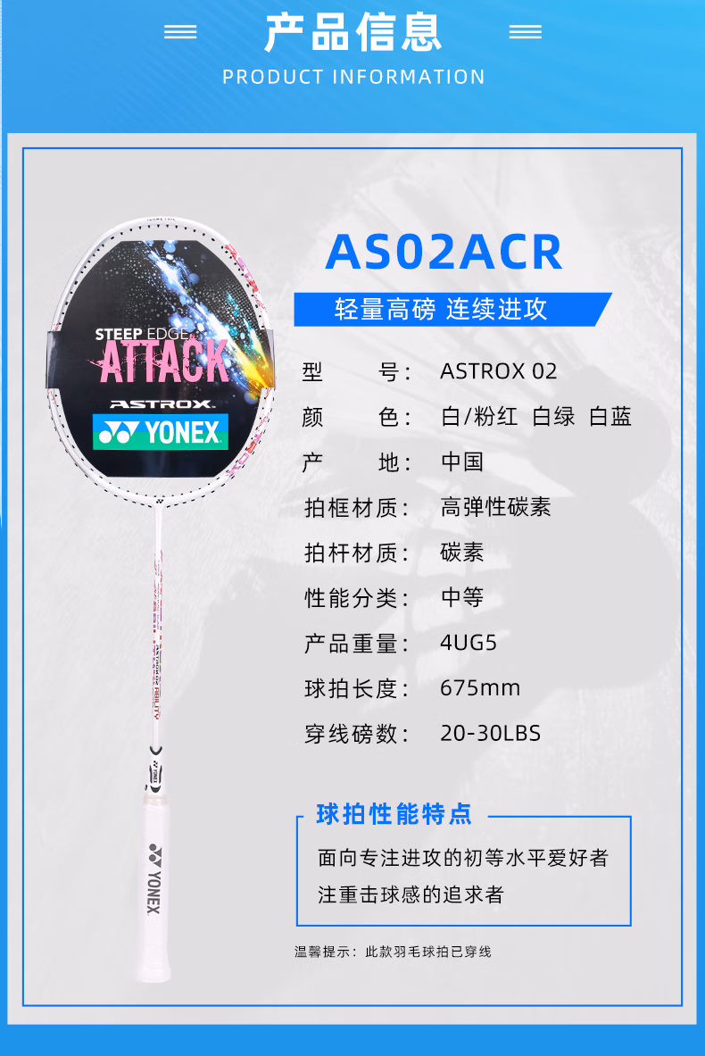 YONEX /尤尼克斯25年款羽毛球拍AX02CCR_066_4U5/AX02CCR_207_4U5(不含羽线)