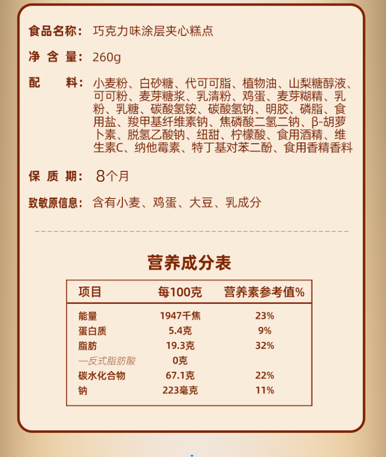 【69元任选十件】梅尼耶巧克力味·派(巧克力味)260g