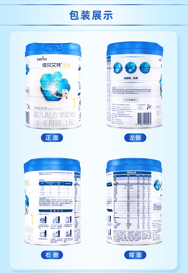 【总部专配】佳贝艾特悠装羊乳婴儿配方羊奶粉2段800g