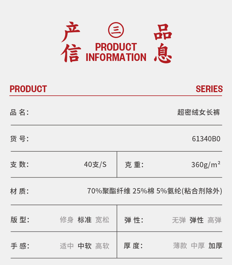 Threegun三枪 【超密绒】女士长裤-61340B011
