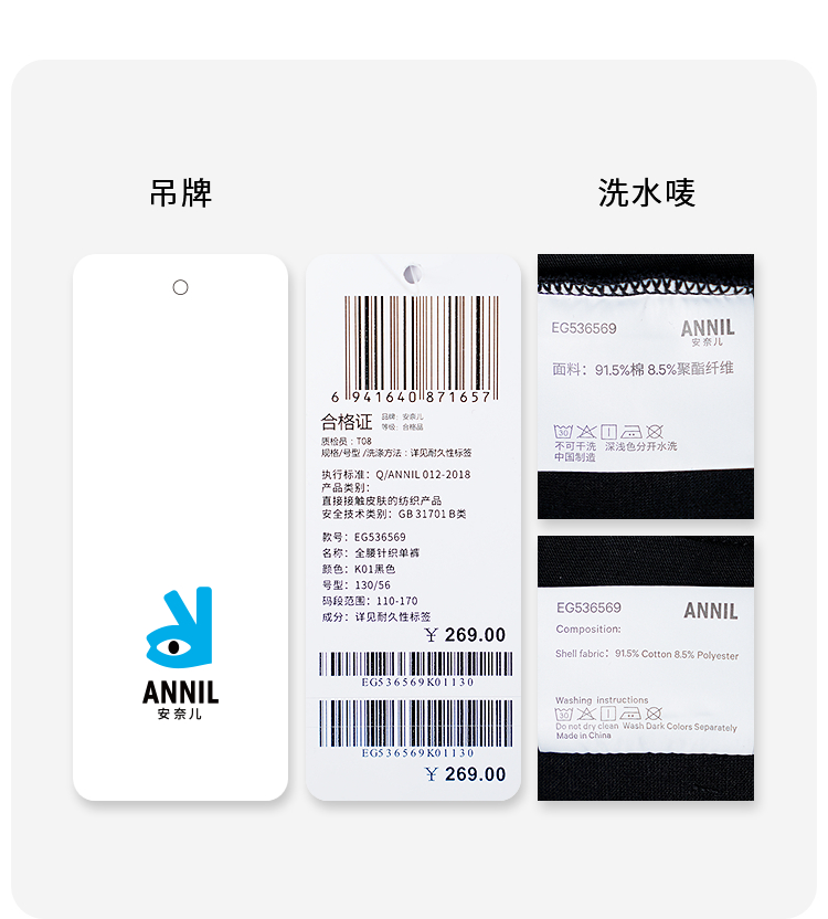 女童全腰针织单裤秋季新款安奈儿童装EG536569