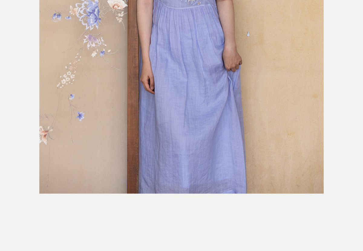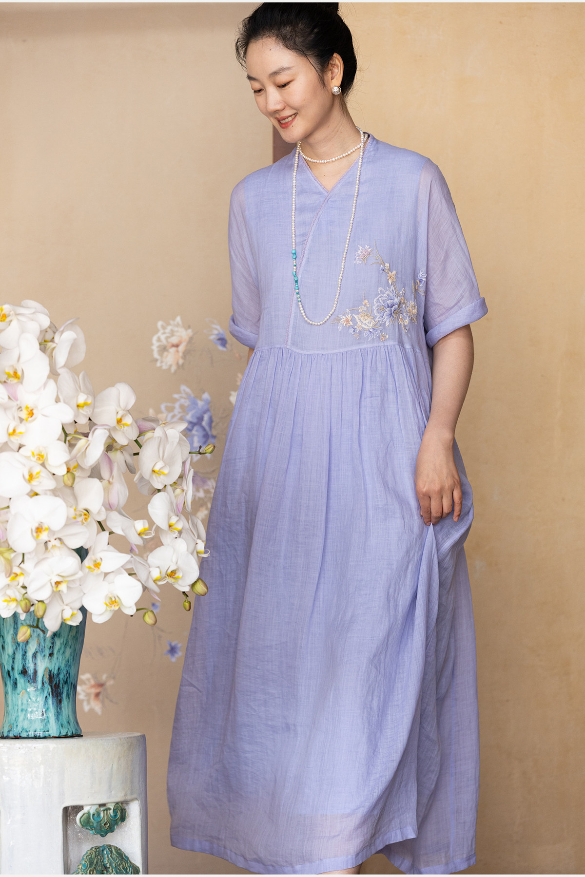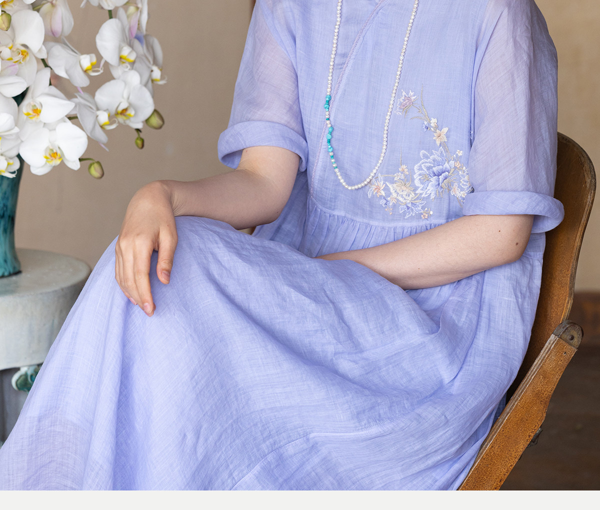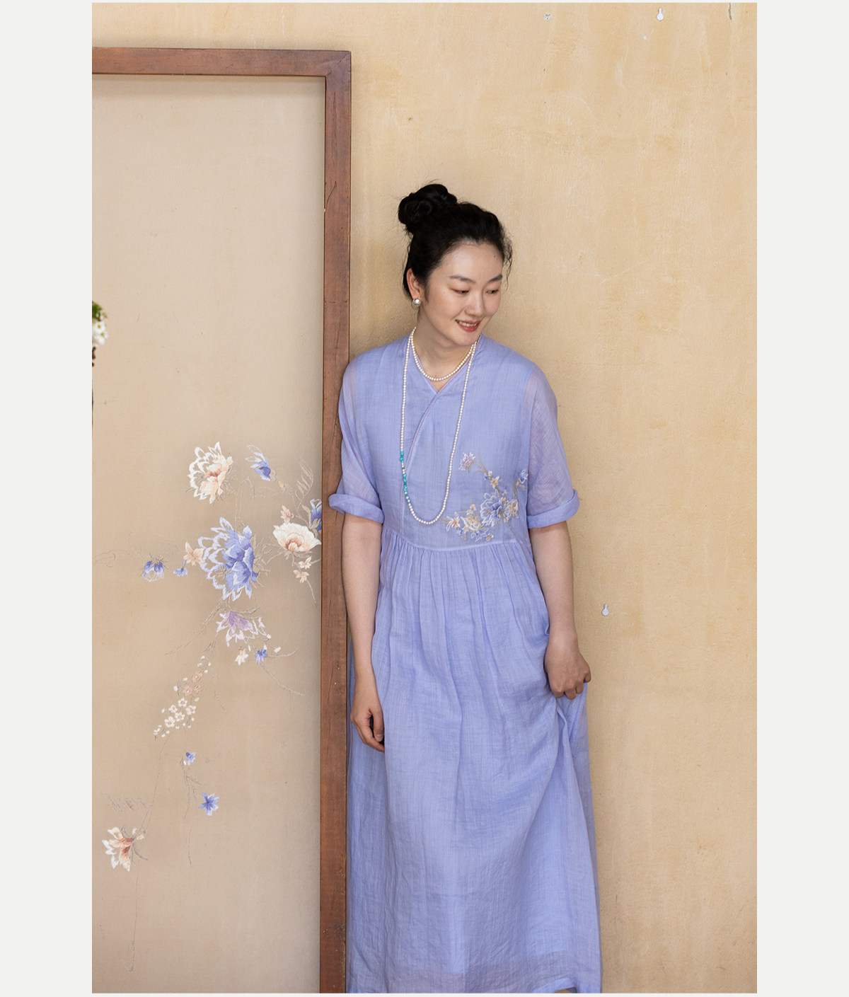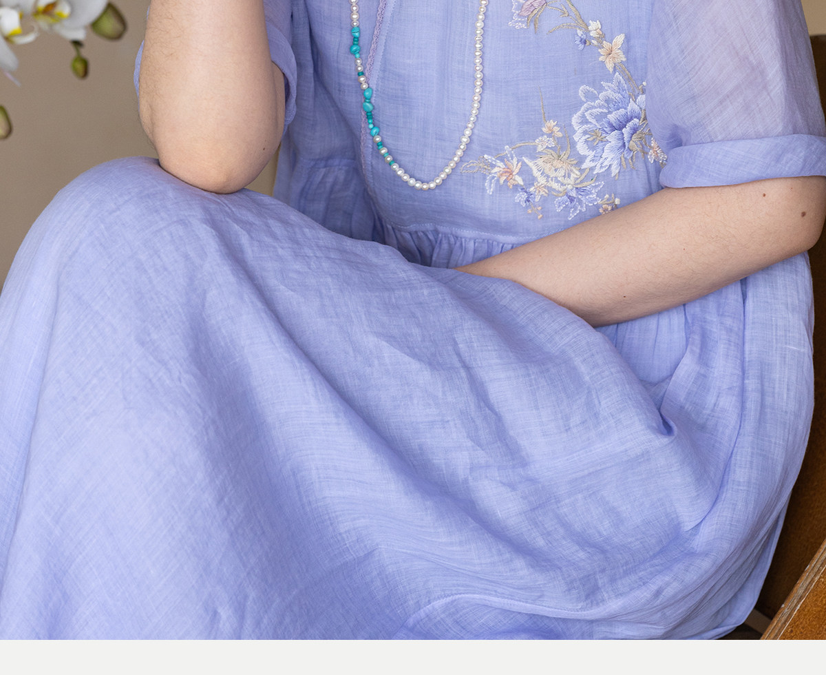 牧衣游原创 手工刺绣苎麻连衣裙女新款宽松轻薄古朴文艺长裙 云肆