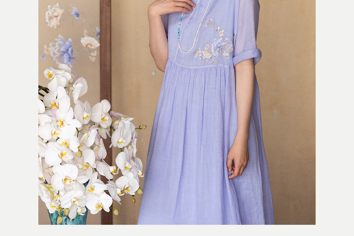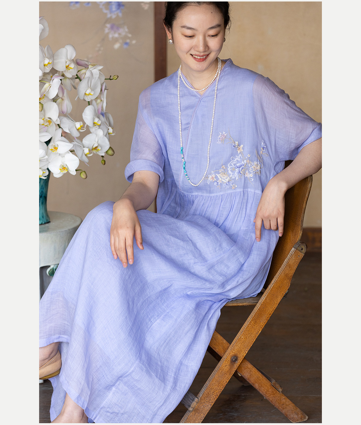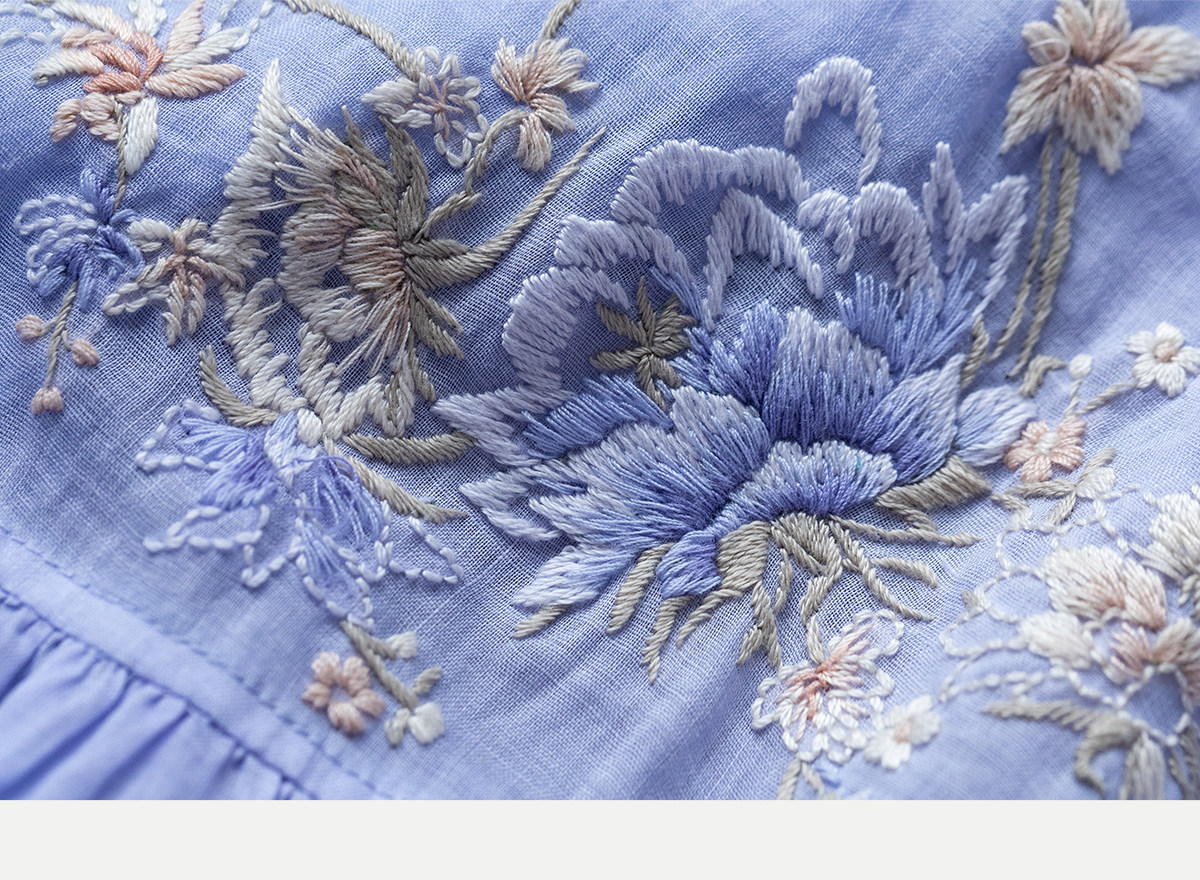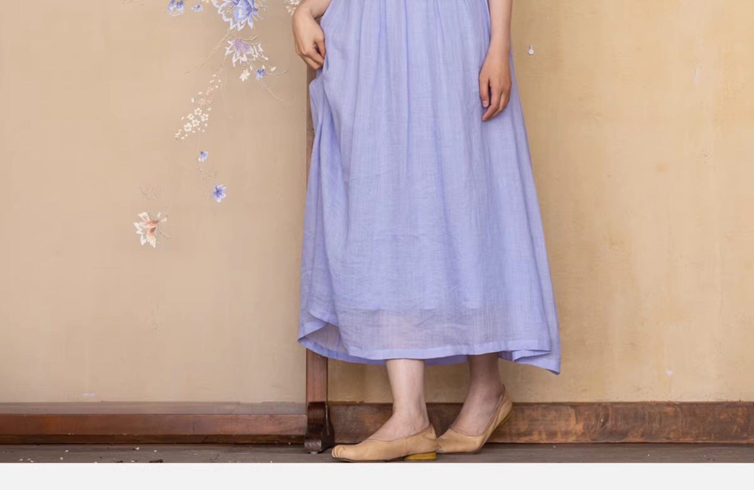 牧衣游原创 手工刺绣苎麻连衣裙女新款宽松轻薄古朴文艺长裙 云肆