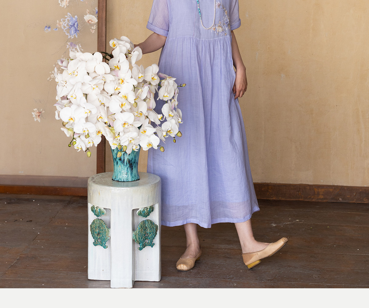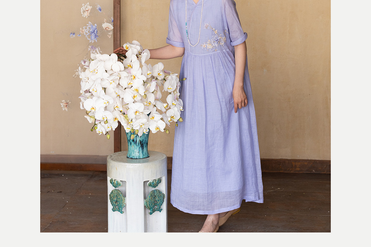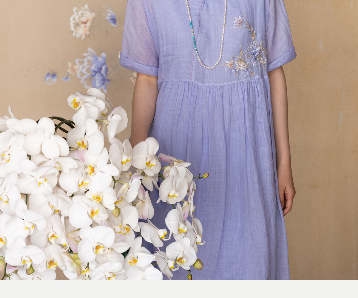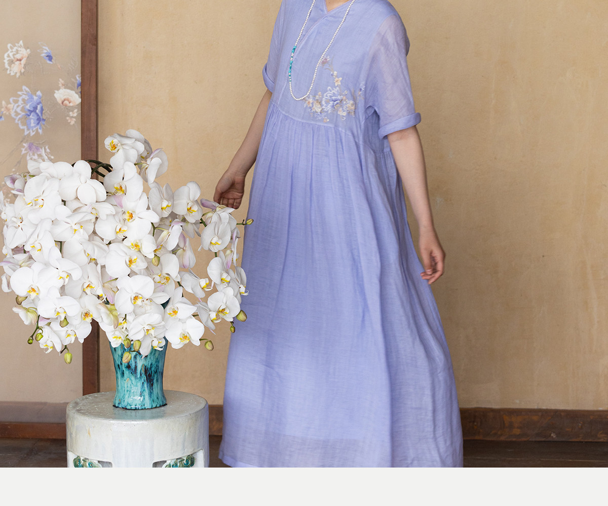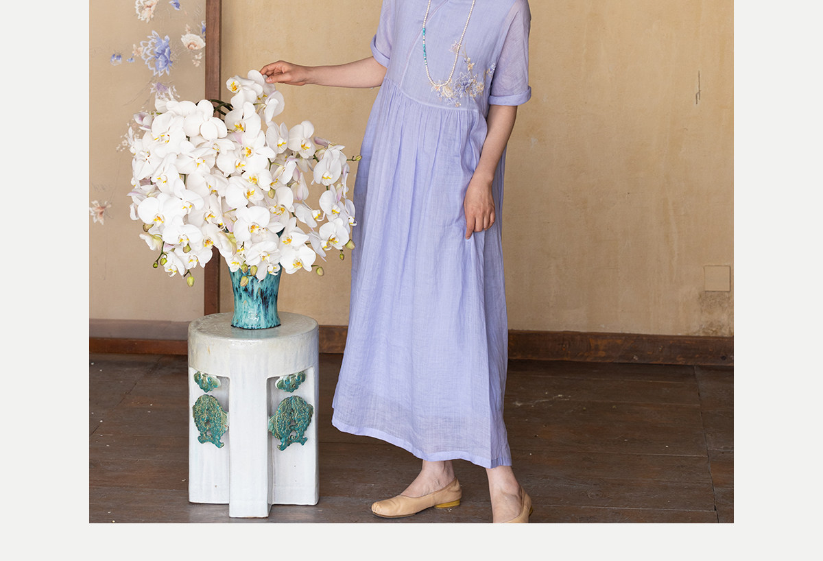 牧衣游原创 手工刺绣苎麻连衣裙女新款宽松轻薄古朴文艺长裙 云肆