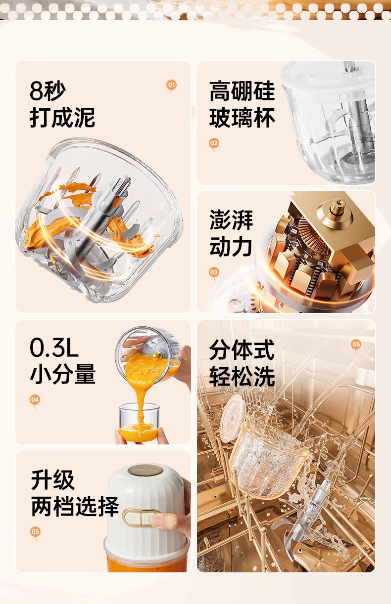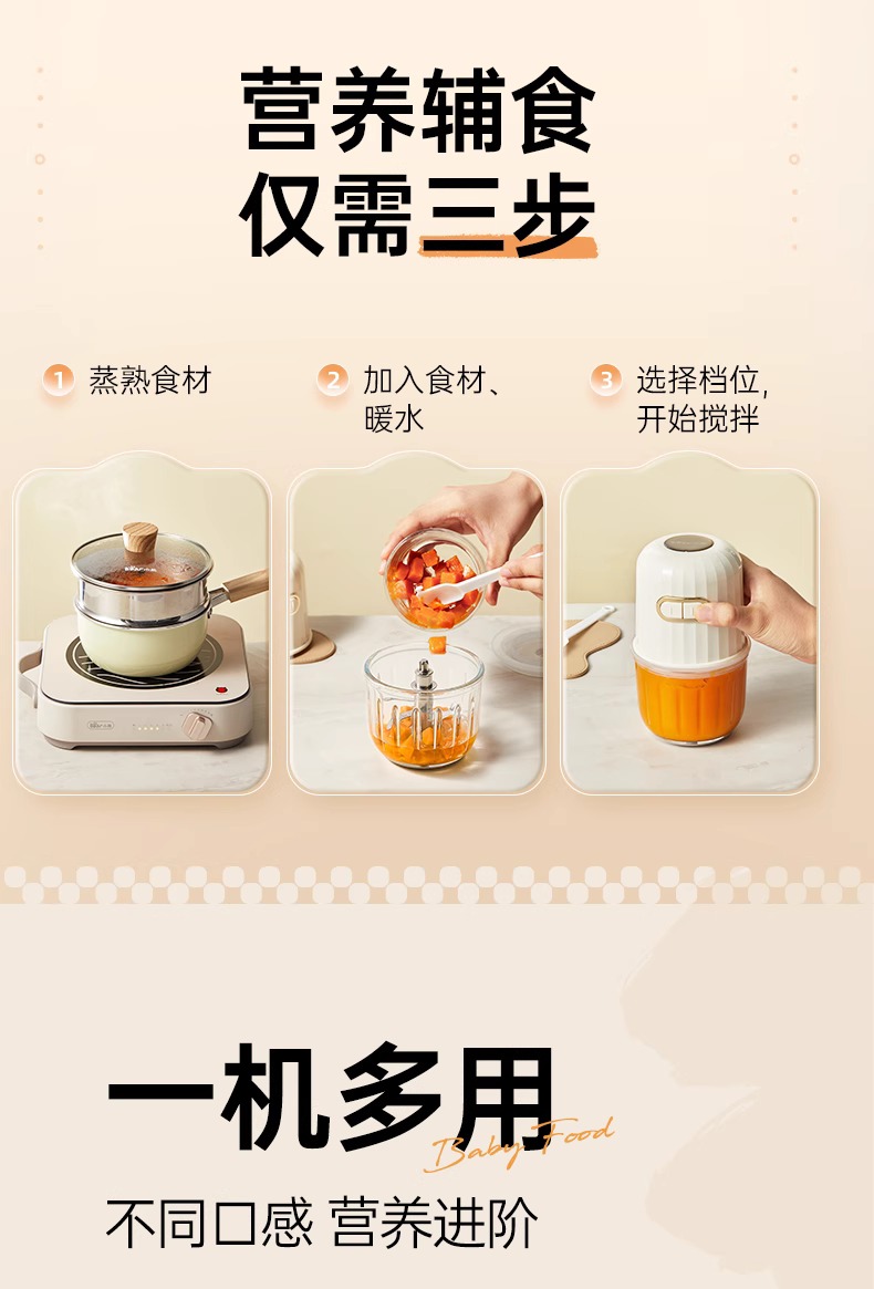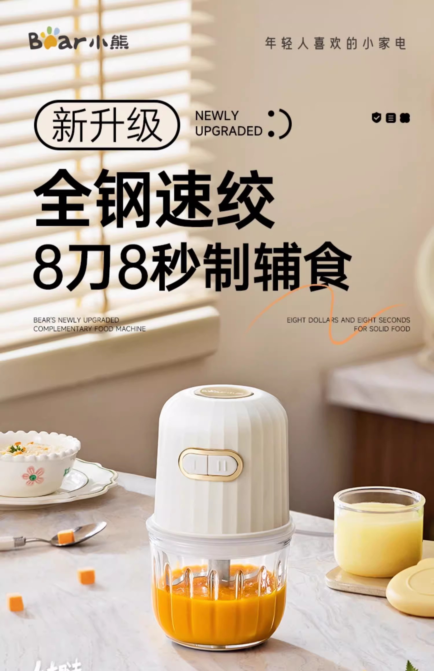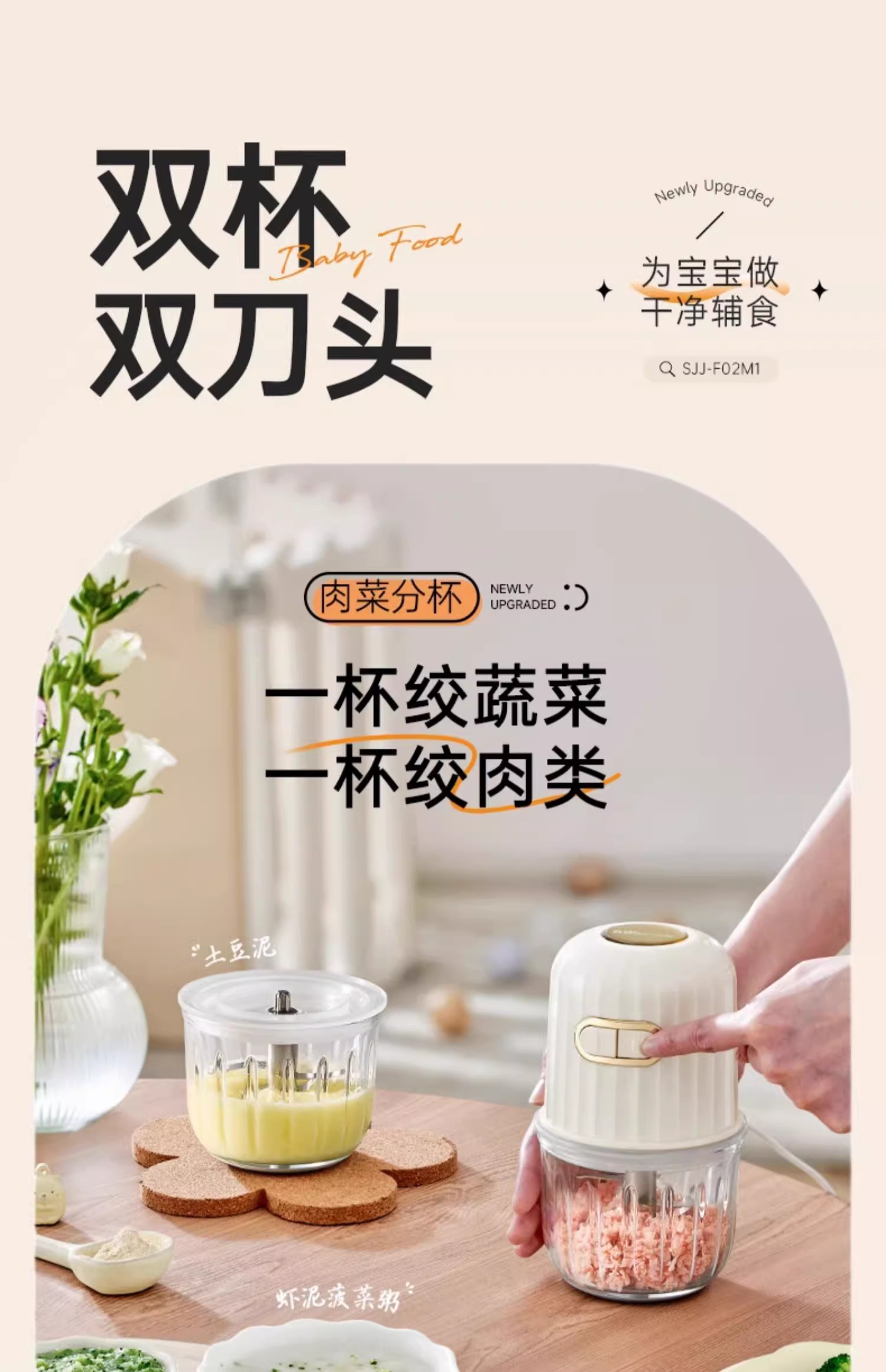 小熊婴儿辅食搅碎机316钢刀片双杯款