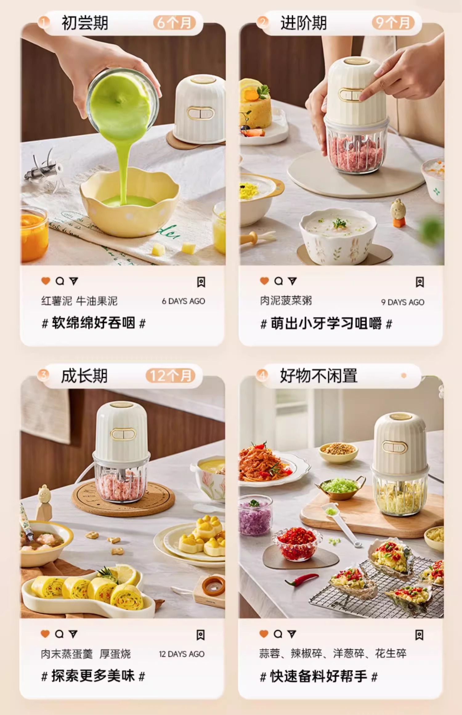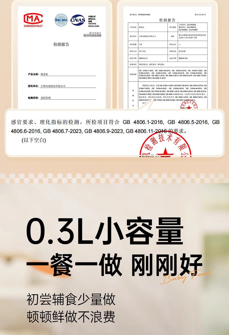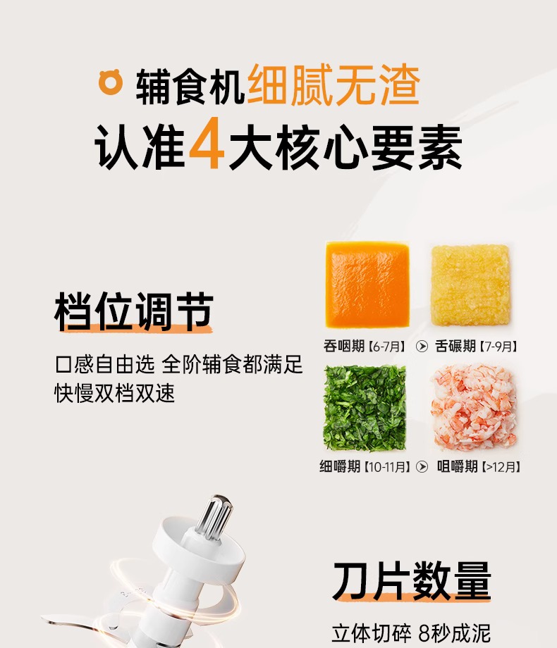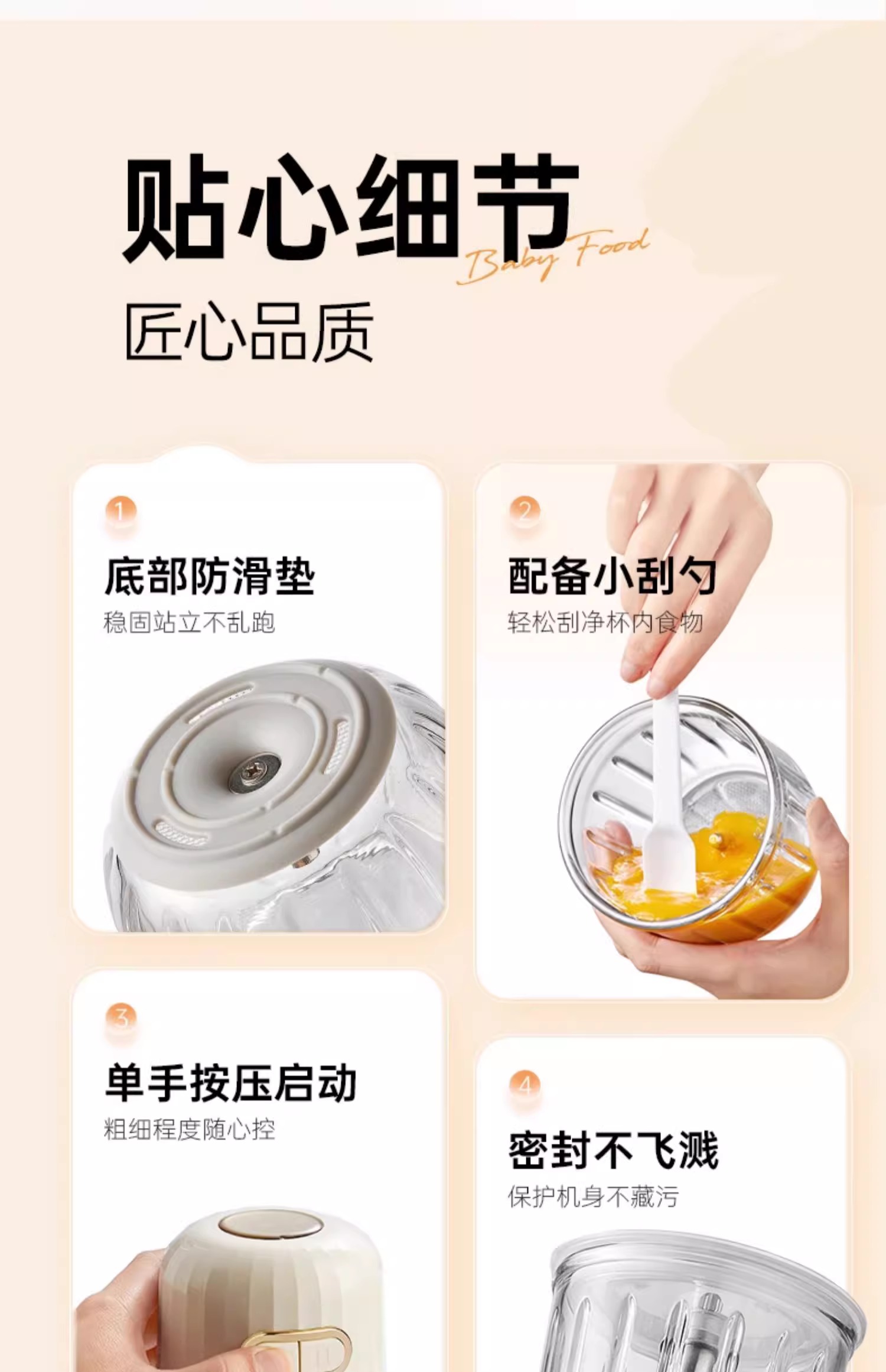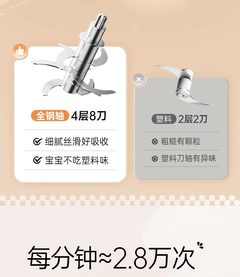 小熊婴儿辅食搅碎机316钢刀片双杯款