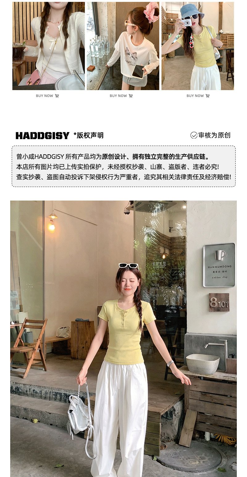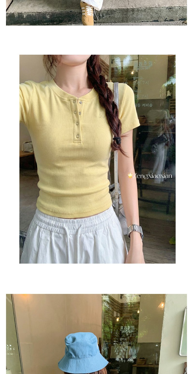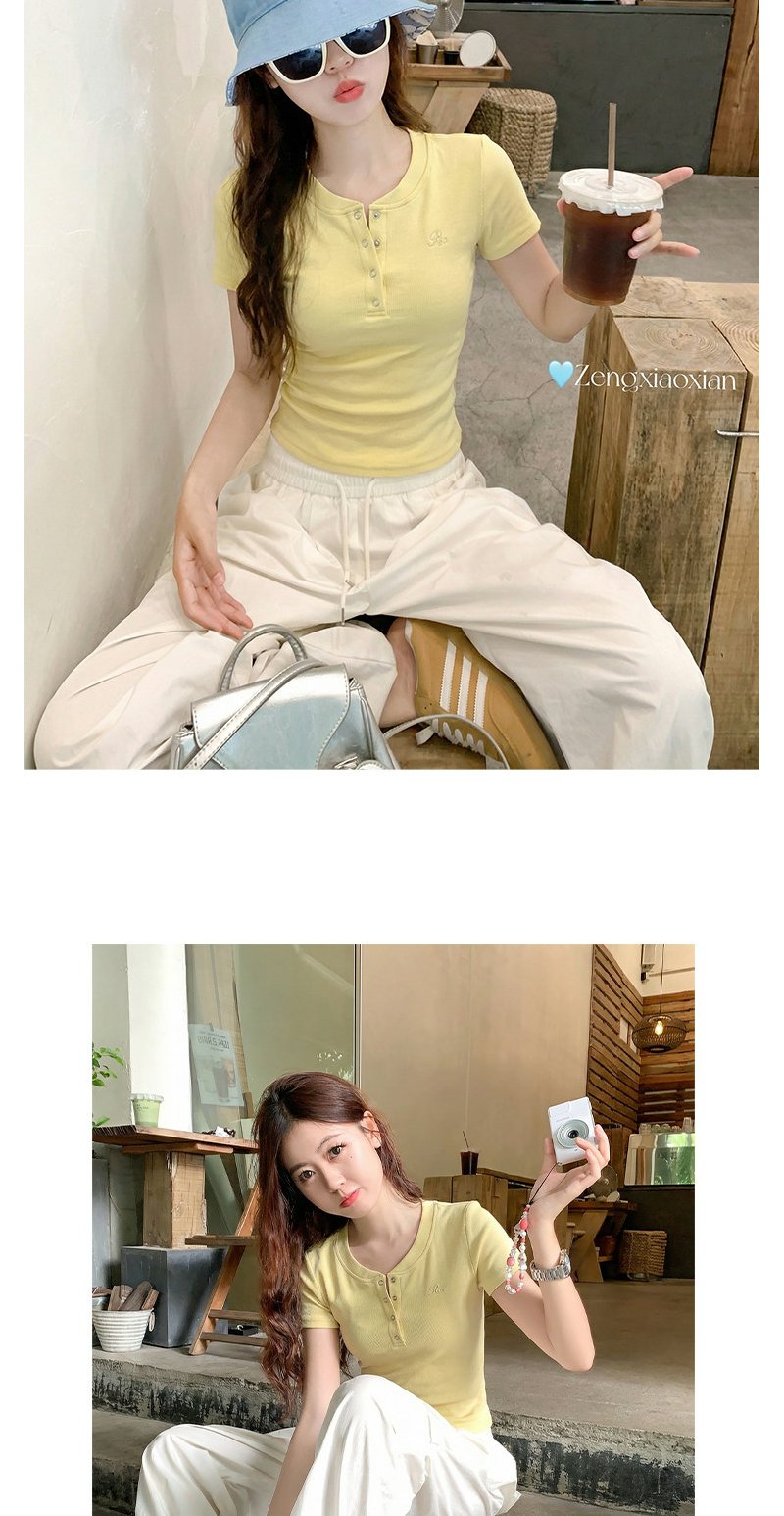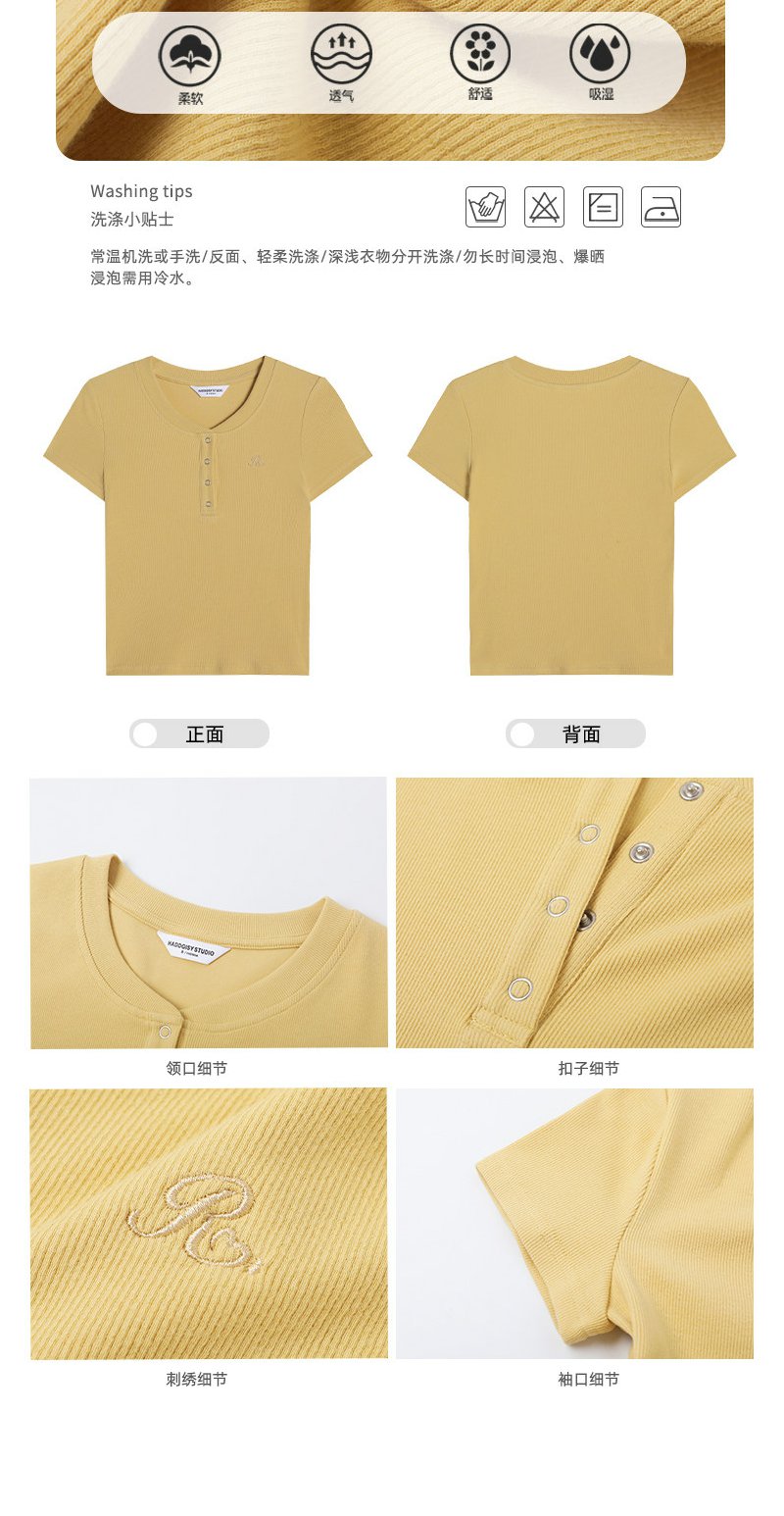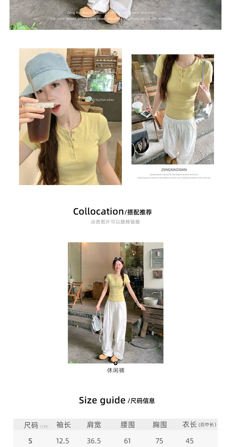<曾小咸推荐>韩系亨利领刺绣修身短袖t恤女【预售款,预计3-15天!!】